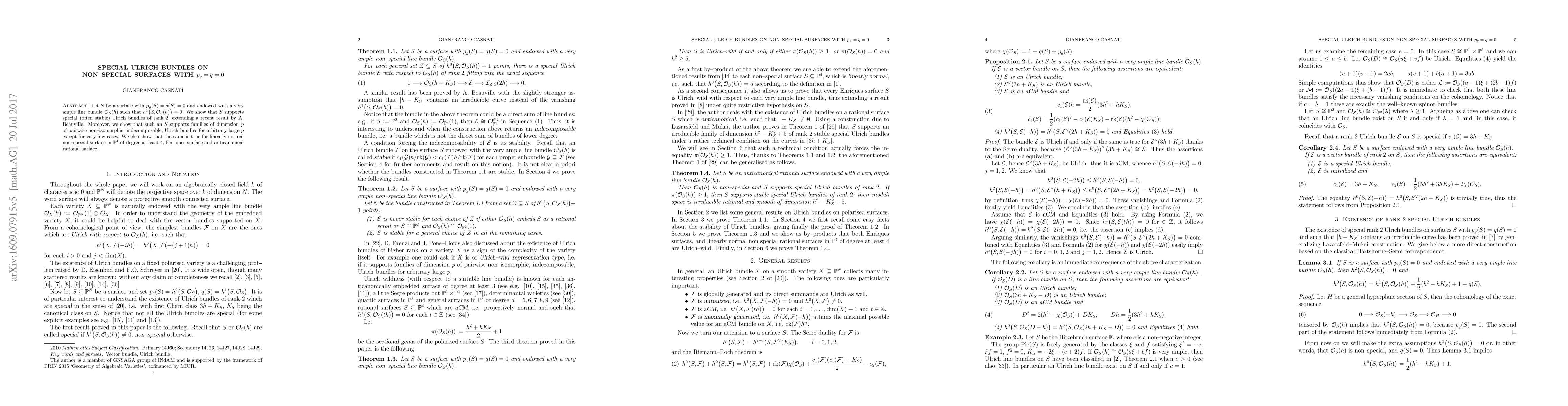 Let $S$ be a surface with $p_g(S)=q(S)=0$ and endowed with a very ample line bundle $\mathcal O_S(h)$ such that $h^1\big(S,\mathcal O_S(h)\big)=0$. We show that $S$ supports special (often stable) Ulrich bundles of rank $2$, extending a recent result by A. Beauville. Moreover, we show that such an $S$ supports families of dimension $p$ of pairwise non-isomorphic, indecomposable, Ulrich bundles for arbitrary large $p$ except for very few cases. We also show that the same is true for linearly normal non-special surface in $\mathbb P^4$ of degree at least $4$, Enriques surface and anticanonical rational surface.