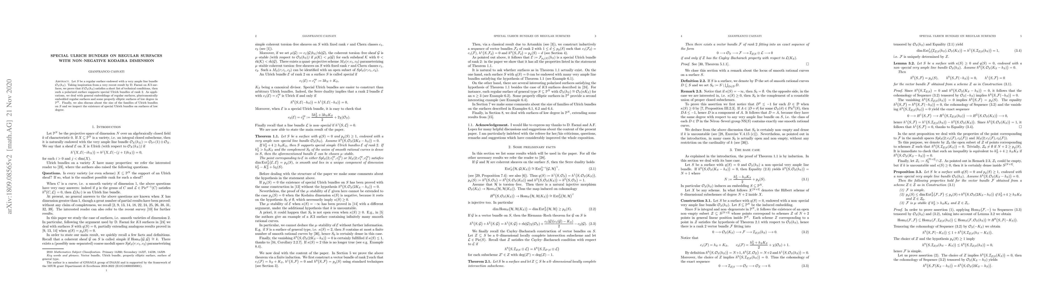 Let $S$ be a regular surface endowed with a very ample line bundle $\mathcal O_S(h_S)$. Taking inspiration from a very recent result by D. Faenzi on $K3$ surfaces, we prove that if $\mathcal O_S(h_S)$ satisfies a short list of technical conditions, then such a polarized surface supports special Ulrich bundles of rank $2$. As applications, we deal with general embeddings of regular surfaces, pluricanonically embedded regular surfaces and some properly elliptic surfaces of low degree in $\mathbb P^N$. Finally, we also discuss about the size of the families of Ulrich bundles on $S$ and we inspect the existence of special Ulrich bundles on surfaces of low degree.