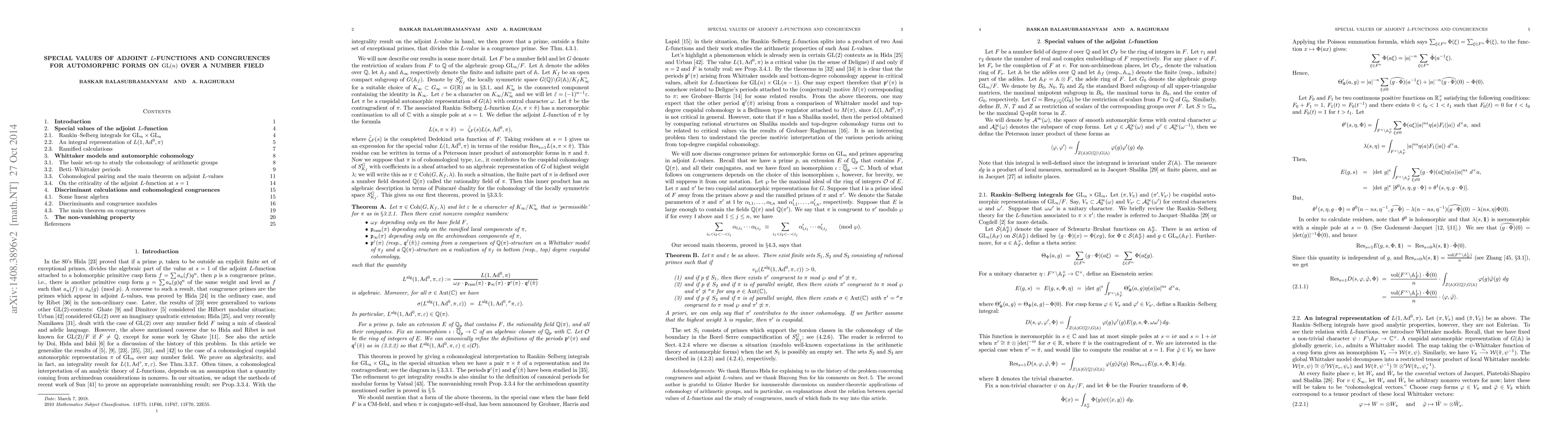 This paper proves the integrality of the adjoint L-function value at s=1 for cuspidal automorphic representations on GL(n) over any number field. It further demonstrates that primes dividing the special value lead to congruences between automorphic forms, and establishes a non-vanishing property for Rankin-Selberg L-functions on GL(n) x GL(n).