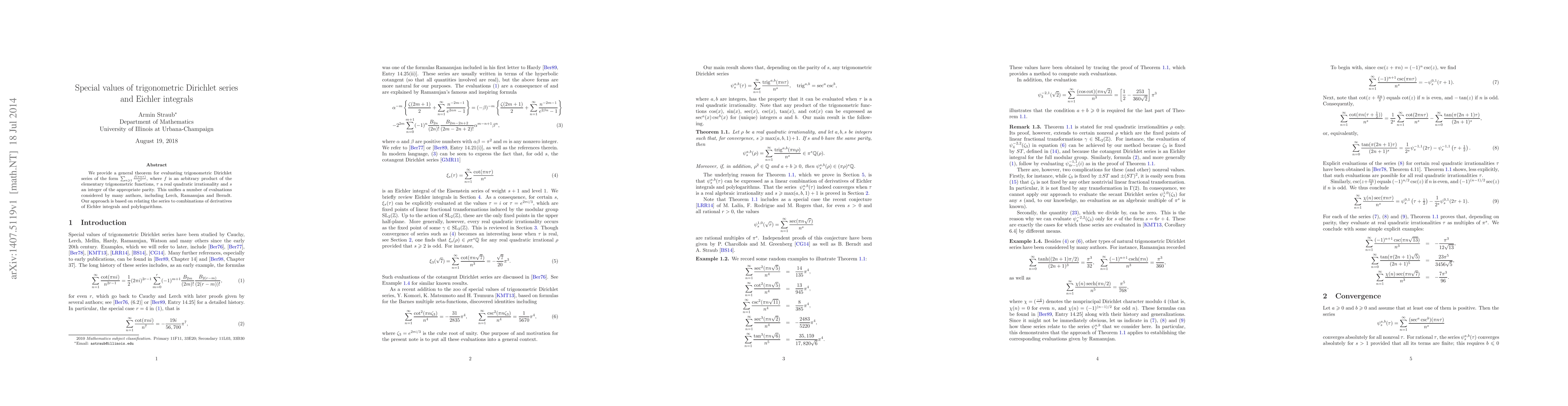 This paper presents a general theorem for evaluating trigonometric Dirichlet series, unifying previous evaluations by Lerch, Ramanujan, and Berndt. The approach links these series to derivatives of Eichler integrals and polylogarithms.