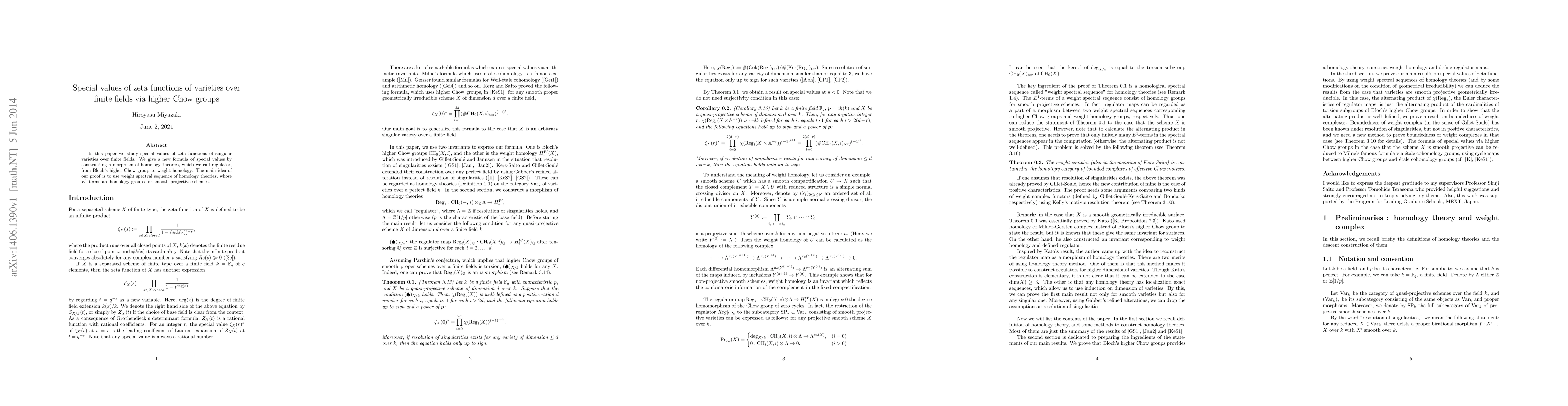This paper presents a new formula for special values of zeta functions of singular varieties over finite fields, using a regulator morphism from higher Chow groups to weight homology. The authors prove this formula by employing a weight spectral sequence and show that the weight complex for any variety over a perfect field is bounded, extending previous results.