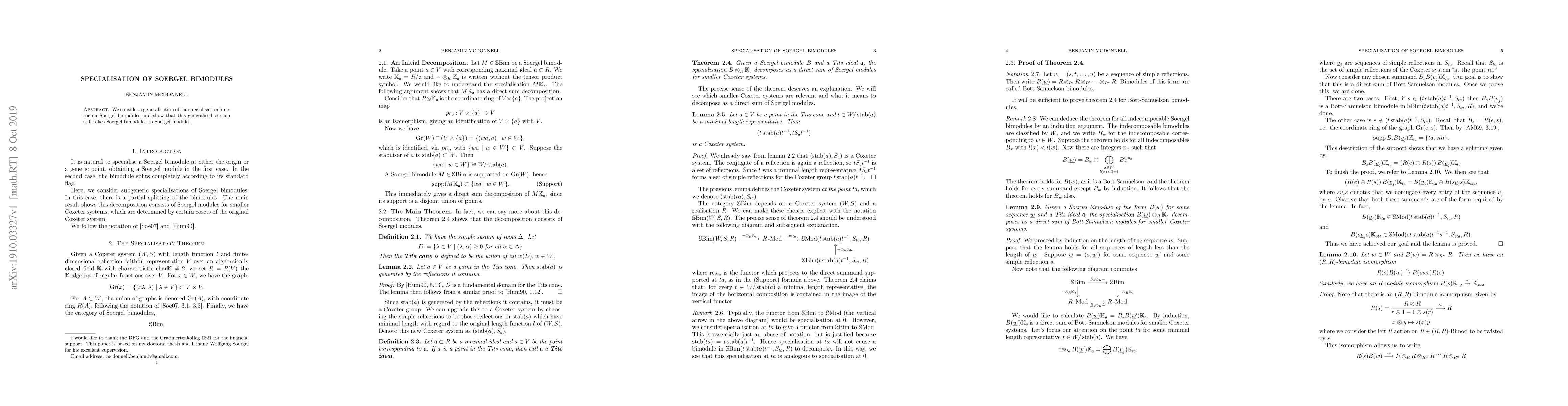 The research uses a generalisation of the specialisation functor on Soergel bimodules to show that this generalised version still takes Soergel bimodules to Soergel modules.