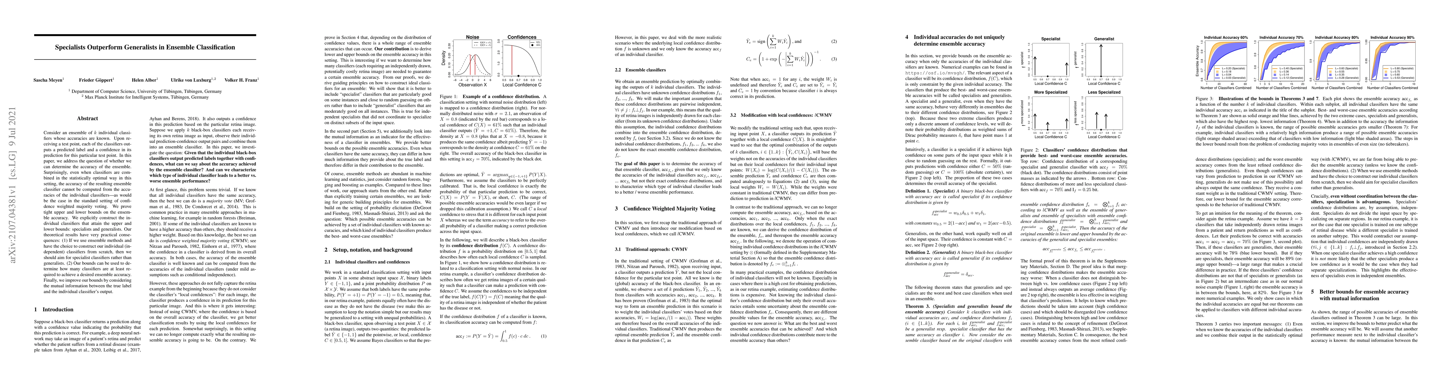 Consider an ensemble of $k$ individual classifiers whose accuracies are known. Upon receiving a test point, each of the classifiers outputs a predicted label and a confidence in its prediction for this particular test point. In this paper, we address the question of whether we can determine the accuracy of the ensemble. Surprisingly, even when classifiers are combined in the statistically optimal way in this setting, the accuracy of the resulting ensemble classifier cannot be computed from the accuracies of the individual classifiers-as would be the case in the standard setting of confidence weighted majority voting. We prove tight upper and lower bounds on the ensemble accuracy. We explicitly construct the individual classifiers that attain the upper and lower bounds: specialists and generalists. Our theoretical results have very practical consequences: (1) If we use ensemble methods and have the choice to construct our individual (independent) classifiers from scratch, then we should aim for specialist classifiers rather than generalists. (2) Our bounds can be used to determine how many classifiers are at least required to achieve a desired ensemble accuracy. Finally, we improve our bounds by considering the mutual information between the true label and the individual classifier's output.