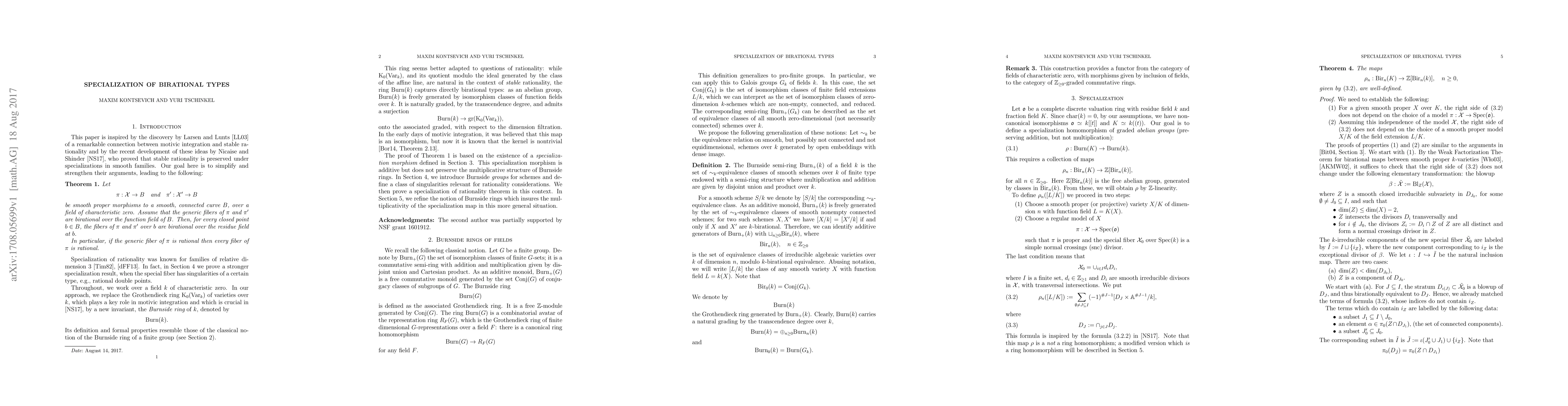 We introduce a simplified version of the Grothendieck group of algebraic varieties and use it to show that birational types specialize in families with mild singularities of the central fiber.