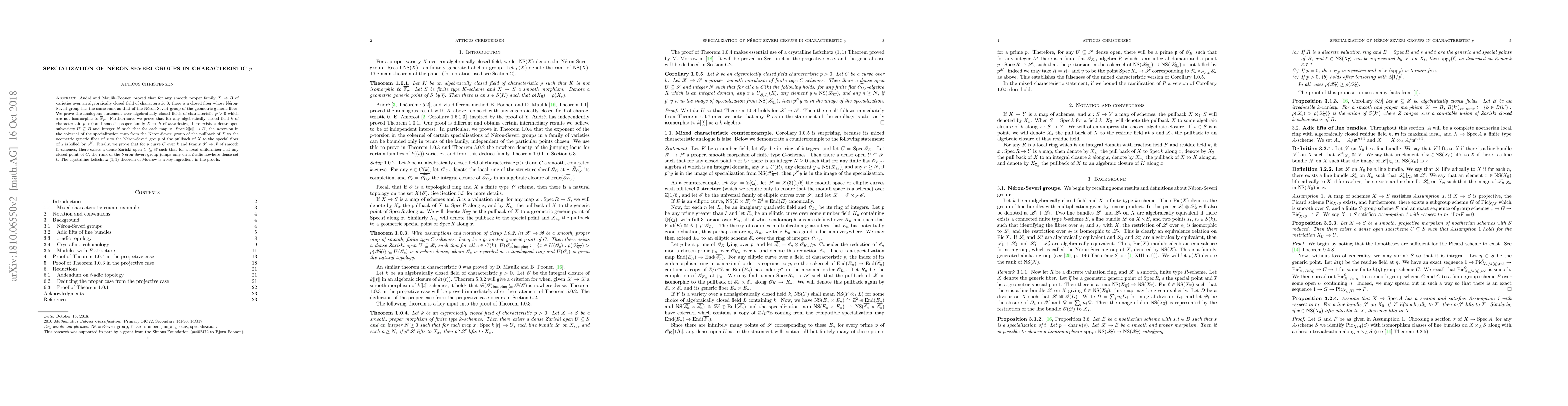 This paper proves the specialization of Néron-Severi groups in characteristic $p>0$ for smooth proper families of varieties, showing that the rank remains the same as in characteristic $0$. It also demonstrates that $p$-torsion in the cokernel of the specialization map is killed by $p^N$ for a dense open subvariety.