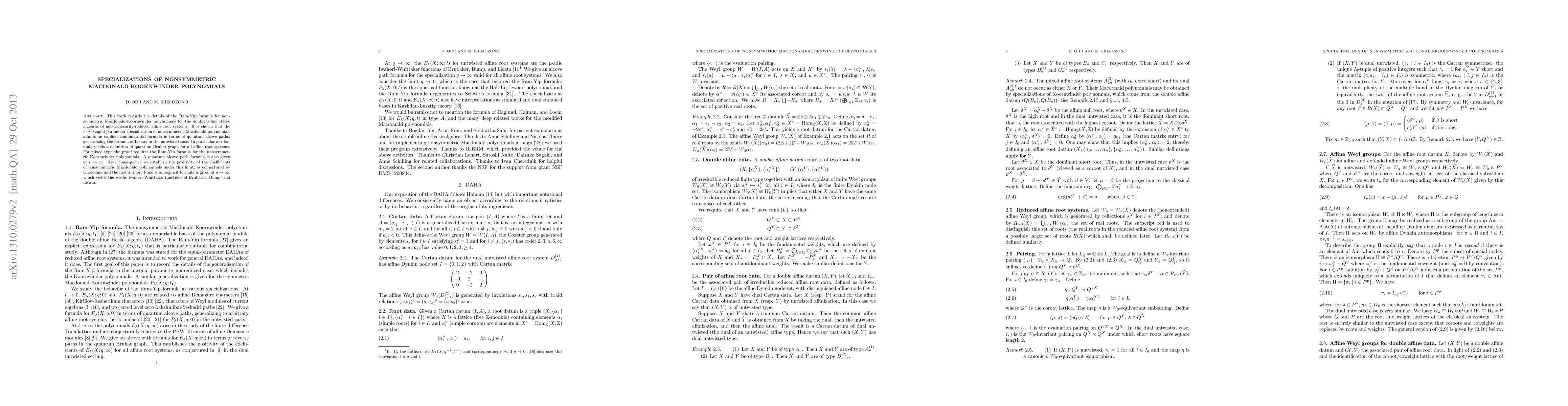 This work records the details of the Ram-Yip formula for nonsymmetric Macdonald-Koornwinder polynomials for the double affine Hecke algebras of not-necessarily-reduced affine root systems. It is shown that the t=0 equal-parameter specialization of nonsymmetric Macdonald polynomials admits an explicit combinatorial formula in terms of quantum alcove paths, generalizing the formula of Lenart in the untwisted case. In particular our formula yields a definition of quantum Bruhat graph for all affine root systems. For mixed type the proof requires the Ram-Yip formula for the nonsymmetric Koornwinder polynomials. A quantum alcove path formula is also given for the limit at t equal to infinity. As a consequence we establish the positivity of the coefficients of nonsymmetric Macdonald polynomials under this limit, as conjectured by Cherednik and the first author. Finally, an explicit formula is given at q equal to infinity, which yields the p-adic Iwahori-Whittaker functions of Brubaker, Bump, and Licata.
