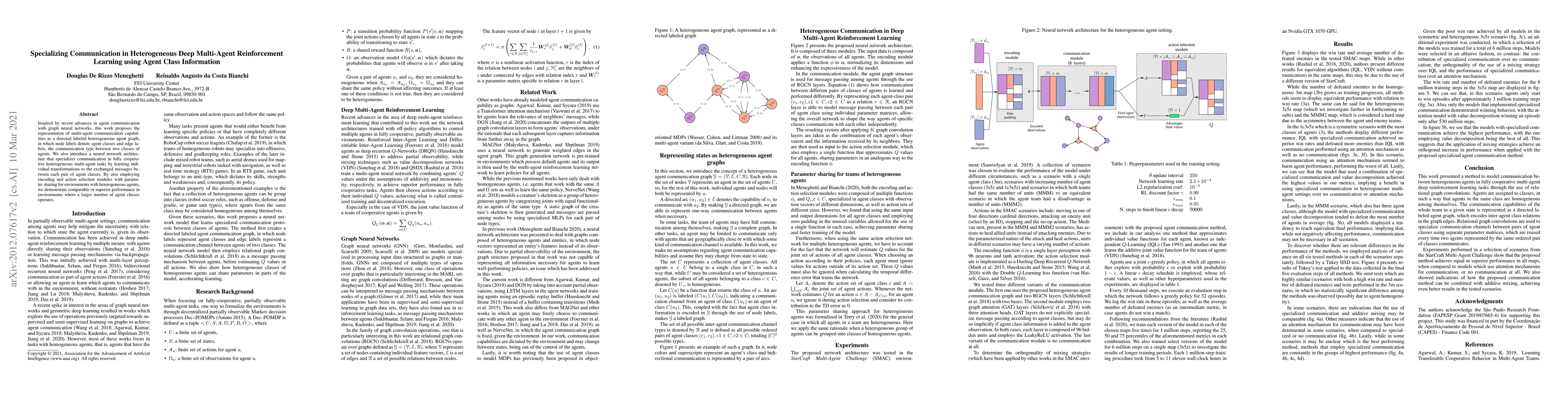 Inspired by recent advances in agent communication with graph neural networks, this work proposes the representation of multi-agent communication capabilities as a directed labeled heterogeneous agent graph, in which node labels denote agent classes and edge labels, the communication type between two classes of agents. We also introduce a neural network architecture that specializes communication in fully cooperative heterogeneous multi-agent tasks by learning individual transformations to the exchanged messages between each pair of agent classes. By also employing encoding and action selection modules with parameter sharing for environments with heterogeneous agents, we demonstrate comparable or superior performance in environments where a larger number of agent classes operates.