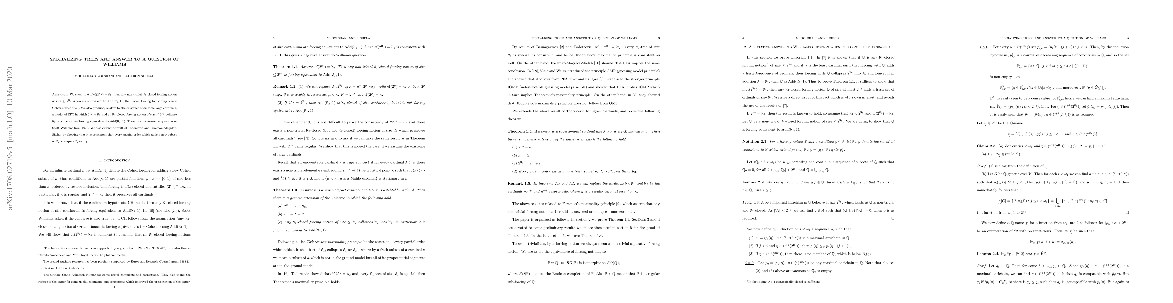 We show that if $cf(2^{\aleph_0})=\aleph_1,$ then any non-trivial $\aleph_1$-closed forcing notion of size $\leq 2^{\aleph_0}$ is forcing equivalent to $Add(\aleph_1, 1),$ the Cohen forcing for adding a new Cohen subset of $\omega_1.$ We also produce, relative to the existence of suitable large cardinals, a model of $ZFC$ in which $2^{\aleph_0}=\aleph_2$ and all $\aleph_1$-closed forcing notion of size $\leq 2^{\aleph_0}$ collapse $\aleph_2,$ and hence are forcing equivalent to $Add(\aleph_1, 1).$ These results answer a question of Scott Williams from 1978. We also extend a result of Todorcevic and Foreman-Magidor-Shelah by showing that it is consistent that every partial order which adds a new subset of $\aleph_2,$ collapses $\aleph_2$ or $\aleph_3.$