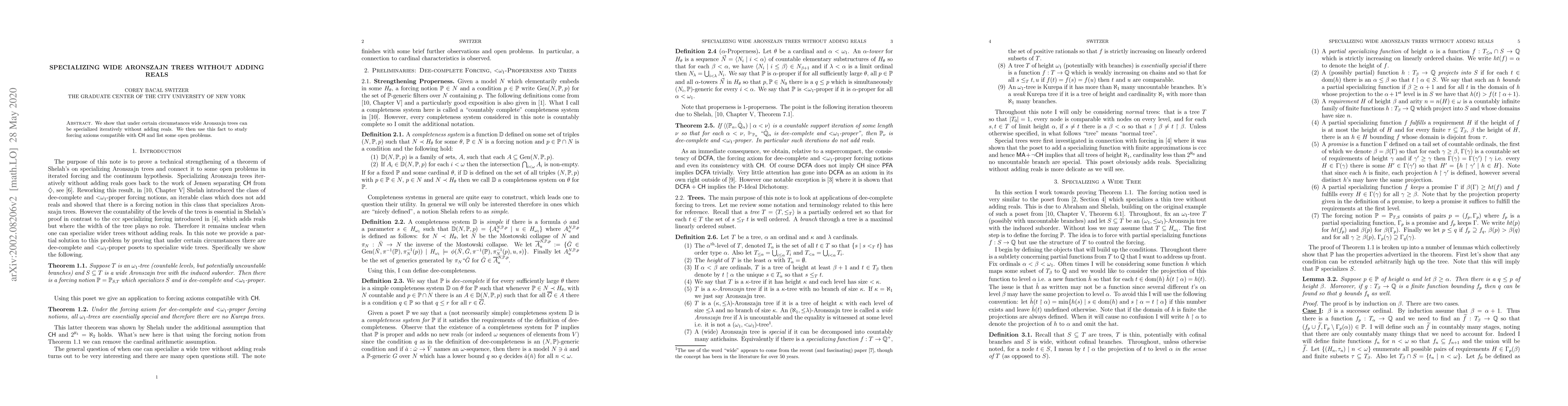 Summary: This paper demonstrates that wide Aronszajn trees can be specialized iteratively without introducing new real numbers, and utilizes this result to explore forcing axioms consistent with the Continuum Hypothesis, while also highlighting some unresolved questions.