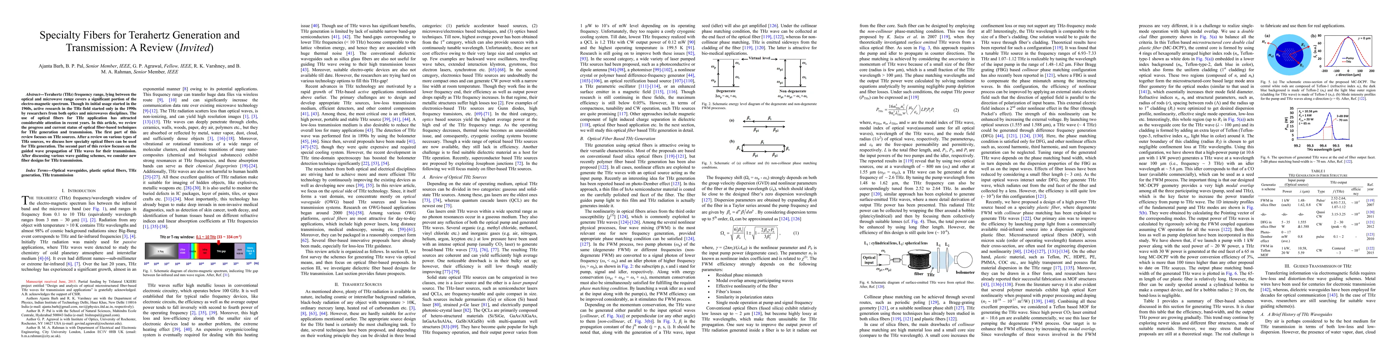 This review examines advancements in optical fiber techniques for terahertz (THz) generation and transmission, covering various THz sources and the role of specialty fibers in enhancing THz wave propagation and transmission efficiency.