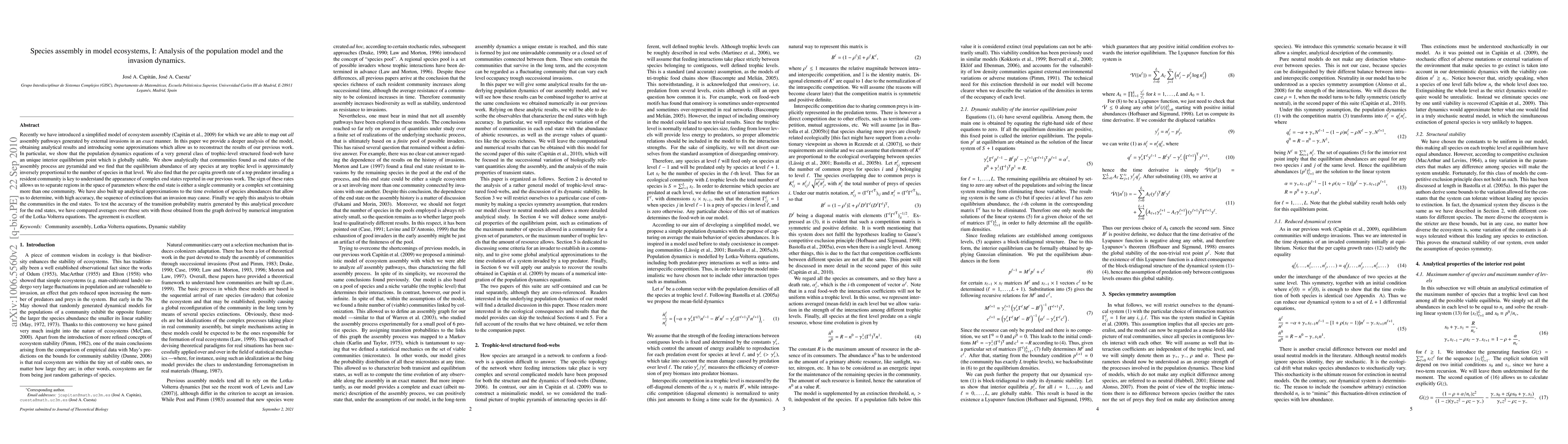 This study analyzes a model of ecosystem assembly, showing that communities formed after invasions are pyramidal and that the abundance of species is inversely proportional to their trophic level. The researchers also develop an analytical framework to predict the sequence of extinctions caused by invasions with high accuracy.