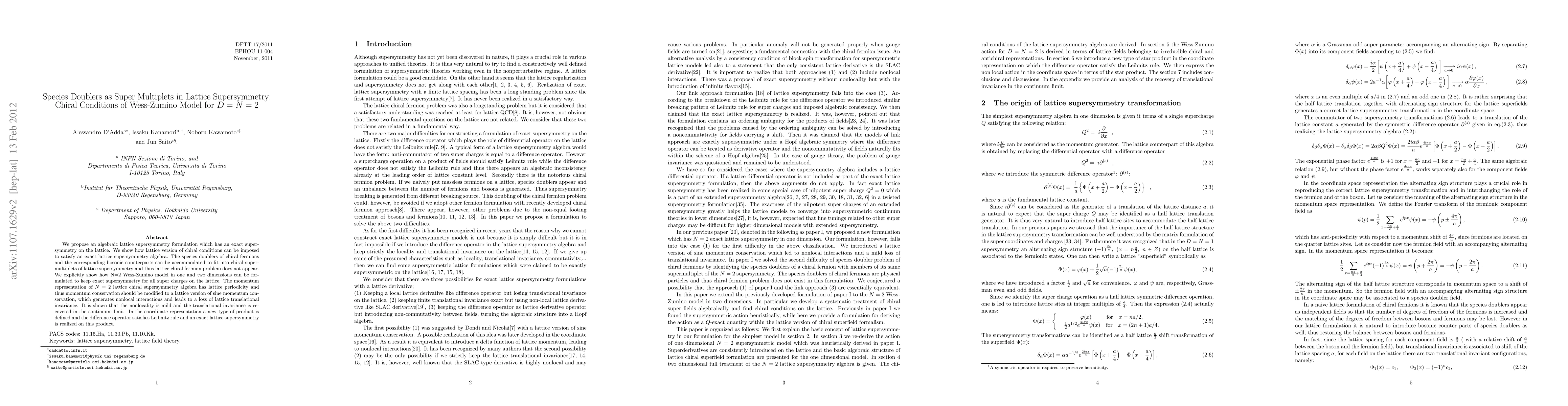 This paper proposes an algebraic lattice supersymmetry formulation that maintains exact supersymmetry on the lattice. It demonstrates how chiral conditions can be imposed to fit species doublers into chiral supermultiplets, thereby resolving the lattice chiral fermion problem, and formulates the N=2 Wess-Zumino model to preserve exact supersymmetry across all supercharges.