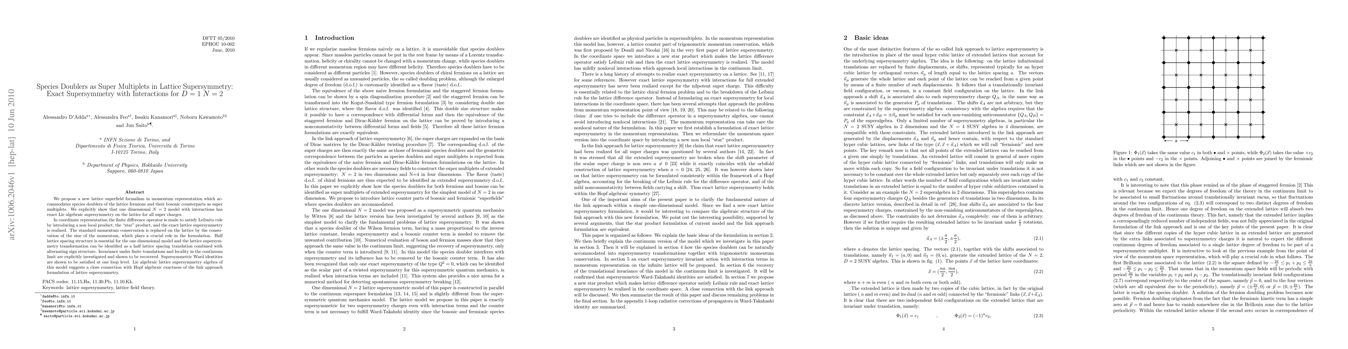 This paper introduces a novel lattice superfield formalism that incorporates species doublers as super multiplets, demonstrating exact Lie algebraic supersymmetry in a one-dimensional N=2 model with interactions. The formalism utilizes a "star" product to satisfy the Leibniz rule in coordinate representation, and the lattice supersymmetry transformation is identified as a half lattice spacing translation.