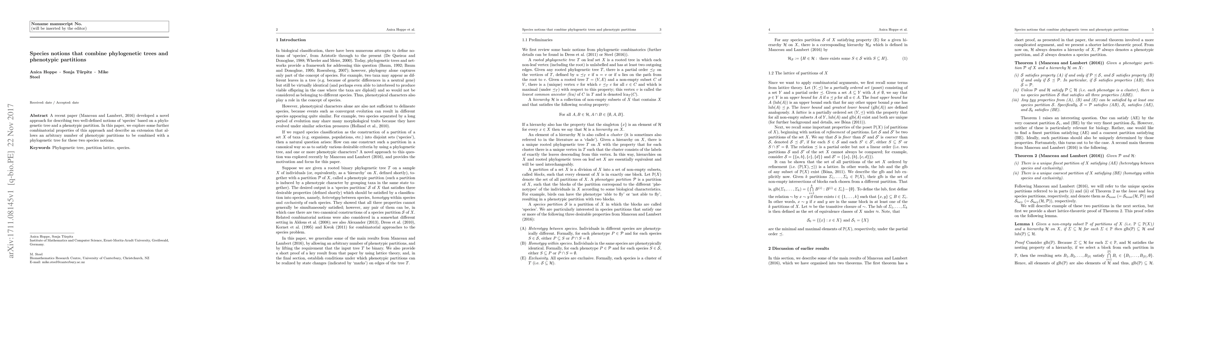 Researchers extend a method for defining species based on phylogenetic trees and phenotypic partitions to allow for an arbitrary number of partitions, enabling more nuanced species notions.