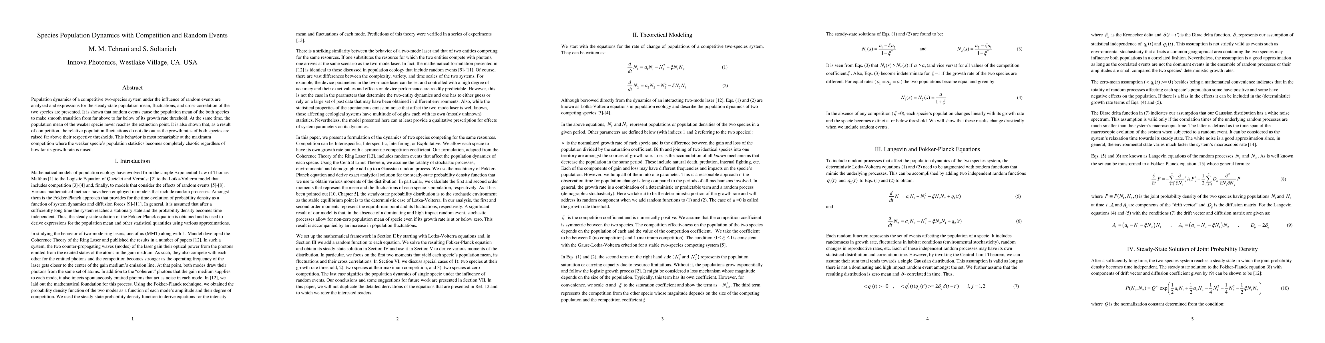 The research provides a novel formulation of competing species under random events using the two-mode ring laser as an analog