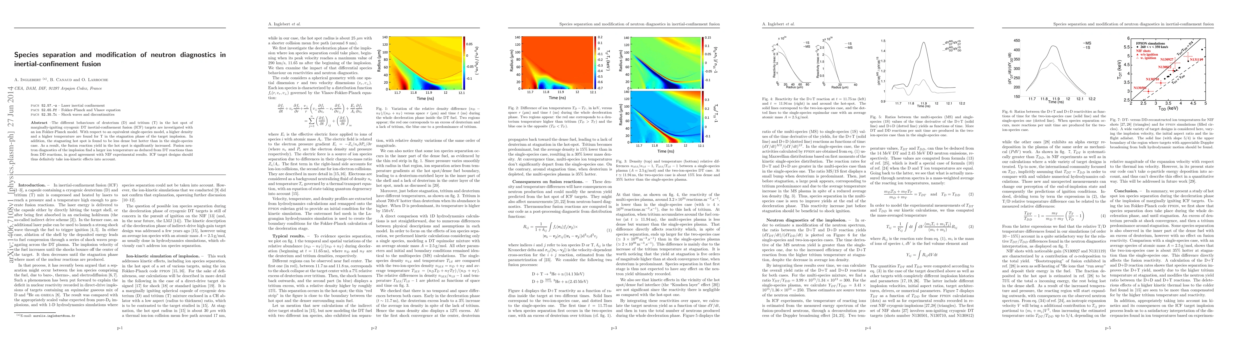 This paper investigates the distinct behaviors of deuterium and tritium in inertial-confinement fusion targets using an ion Fokker-Planck model, revealing a higher density and temperature for tritium in the hot spot. The fusion yield is significantly increased due to these kinetic effects, and diagnostics show a larger ion temperature from DT reactions compared to DD reactions, aligning with experimental results.