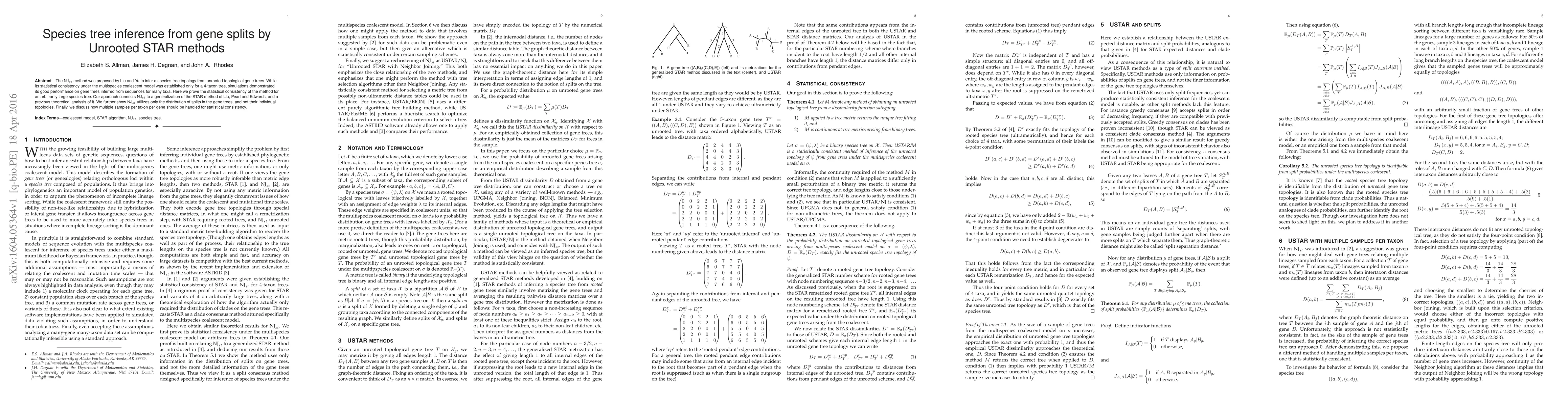 This paper proves the statistical consistency of the $\text{NJ}_{st}$ method for inferring species tree topology from unrooted gene trees, extending its applicability to large species trees. It connects $\text{NJ}_{st}$ to a generalized STAR method and highlights its reliance on split distributions rather than individual gene tree topologies.