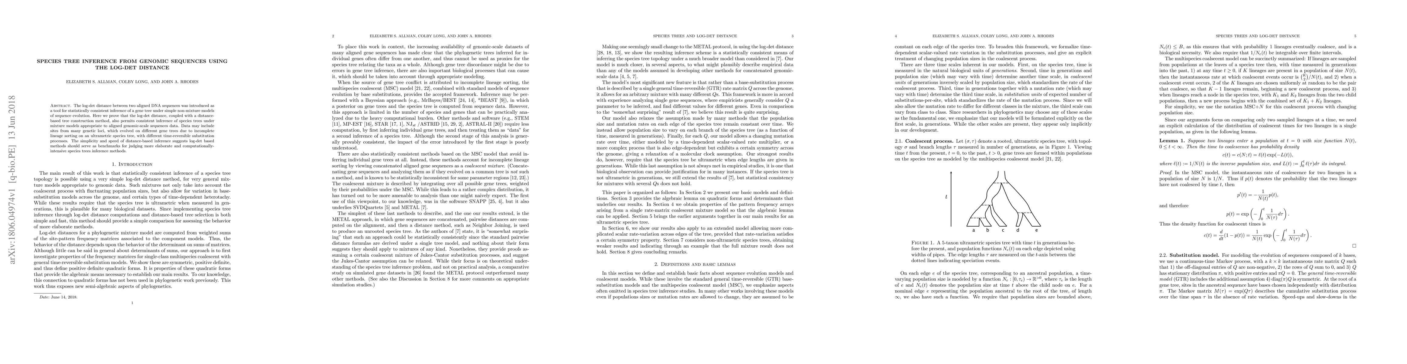 This paper demonstrates that the log-det distance, traditionally used for gene tree inference, can also accurately infer species trees from genomic data under complex evolutionary models. The method's simplicity and speed suggest it could serve as a benchmark for evaluating more complex species tree inference techniques.