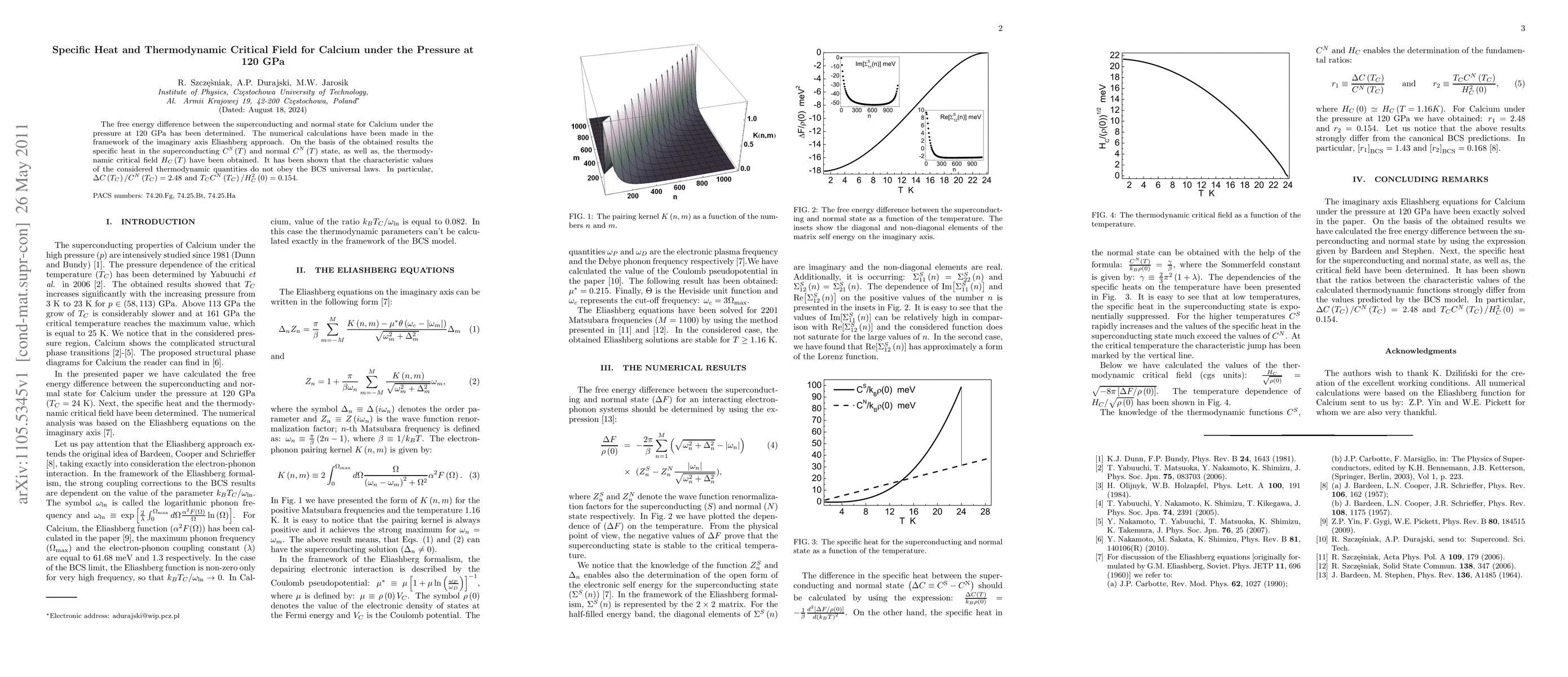 The free energy difference between the superconducting and normal state for Calcium under the pressure at 120 GPa has been determined. The numerical calculations have been made in the framework of the imaginary axis Eliashberg approach. On the basis of the obtained results the specific heat in the superconducting C^{S}(T) and normal C^{N}(T) state, as well as, the thermodynamic critical field H_{C}(T) have been obtained. It has been shown that the characteristic values of the considered thermodynamic quantities do not obey the BCS universal laws. In particular, {\Delta}C(T_{C})/C^N(T_{C})=2.48 and T_{C}C^{N}(T_{C})/H_{C}^{2}(0)=0.154.
