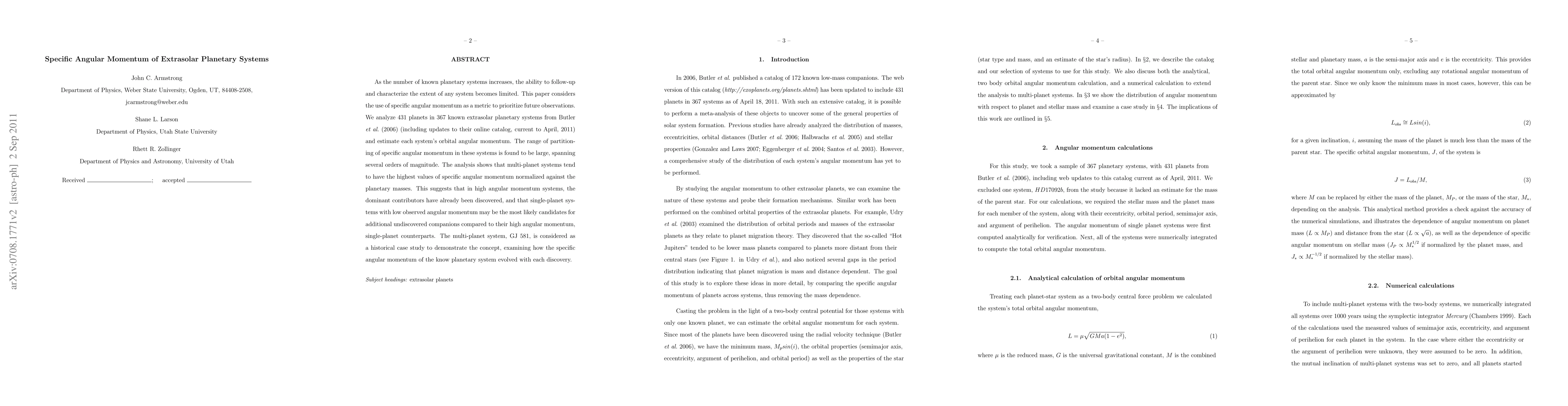 This paper analyzes specific angular momentum in 367 extrasolar planetary systems to prioritize future observations, finding that multi-planet systems typically have higher specific angular momentum. It suggests that single-planet systems with low angular momentum may harbor undiscovered companions.