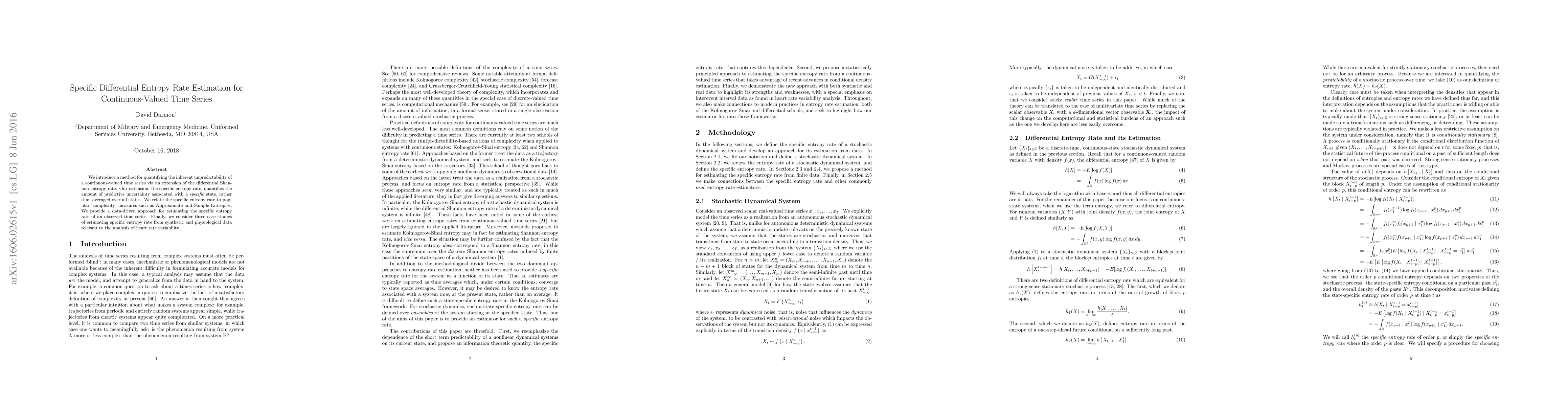 This paper proposes a method to quantify the unpredictability of continuous-valued time series using an extended differential Shannon entropy rate, termed specific entropy rate, which measures uncertainty associated with specific states. It provides a data-driven estimation approach and applies it to synthetic and physiological data, including heart rate variability analysis.