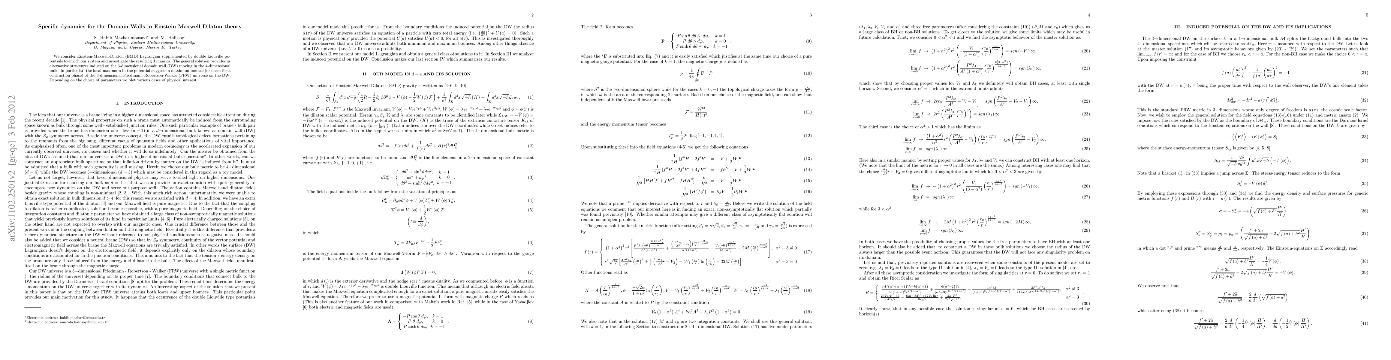 We consider Einstein-Maxwell-Dilaton (EMD) Lagrangian supplemented by double Liouville potentials to enrich our system and investigate the resulting dynamics. The general solution provides us alternative structures induced on the 3-dimensional domain wall (DW) moving in the 4-dimensional bulk. In particular, the local maximum in the potential suggests a maximum bounce (or onset for a contraction phase) of the 3-dimensional Friedmann-Robertson-Walker (FRW) universe on the DW. Depending on the choice of parameters we plot various cases of physical interest.
