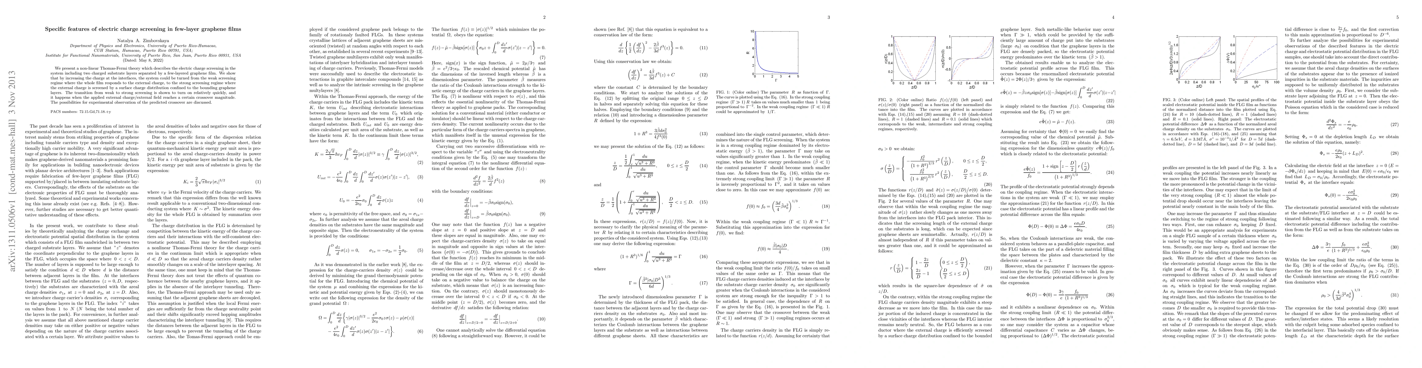 This paper develops a non-linear Thomas-Fermi theory to describe electric charge screening in few-layer graphene films between charged substrates, showing a transition from weak to strong screening as interface charge increases, and discusses potential experimental observations of this transition.