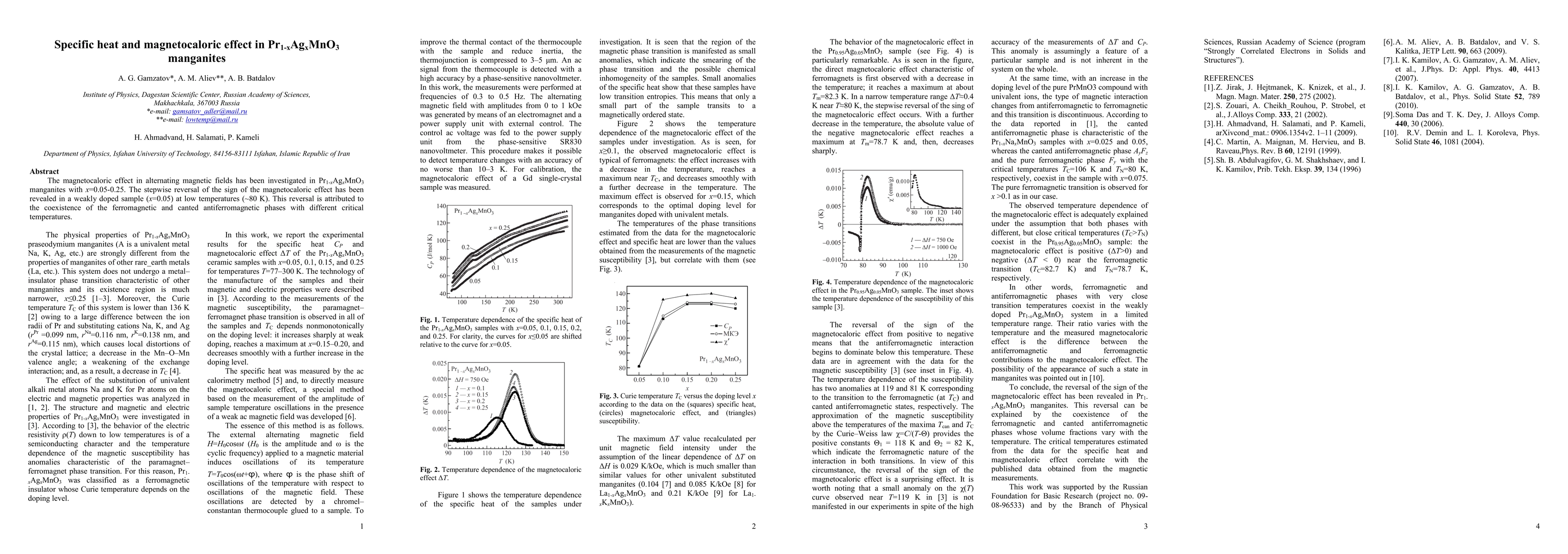 The magnetocaloric effect in alternating magnetic fields has been investigated in Pr1-xAgxMnO3 manganites with x=0.05-0.25. The stepwise reversal of the sign of the magnetocaloric effect has been revealed in a weakly doped sample (x=0.05) at low temperatures (~80 K). This reversal is attributed to the coexistence of the ferromagnetic and canted antiferromagnetic phases with different critical temperatures.