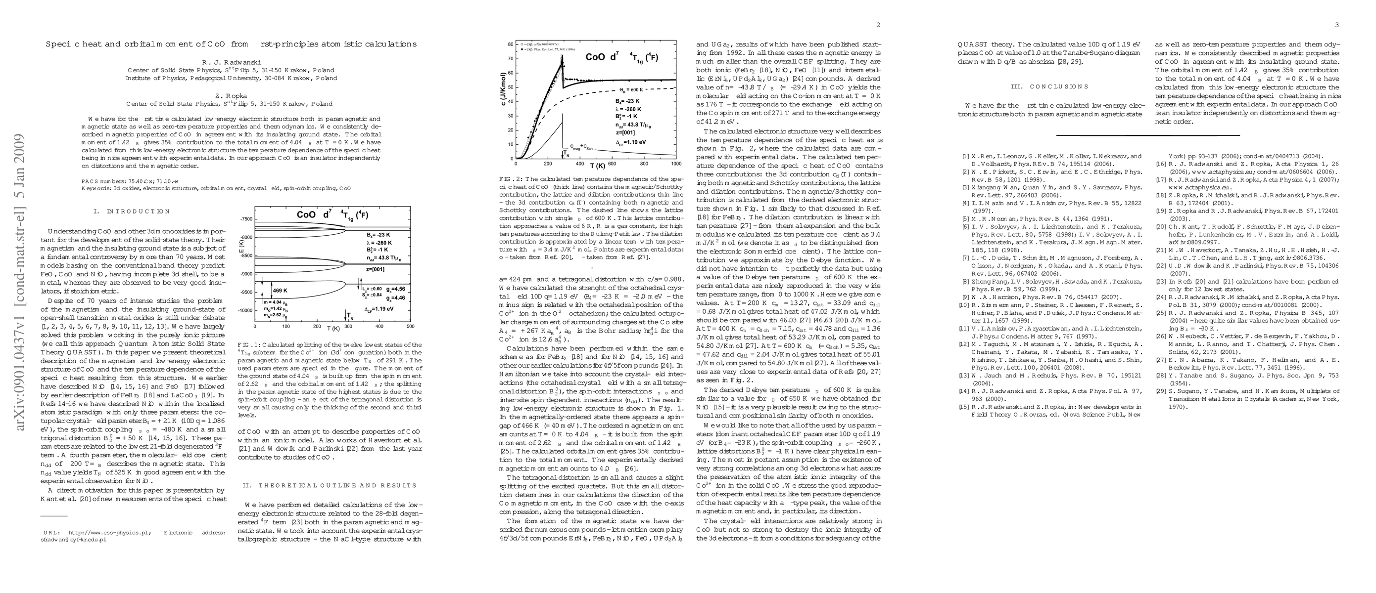 Researchers calculated the electronic structure of CoO, finding an orbital moment of 1.42 mu_B and consistent thermodynamic properties, validating its insulating ground state.