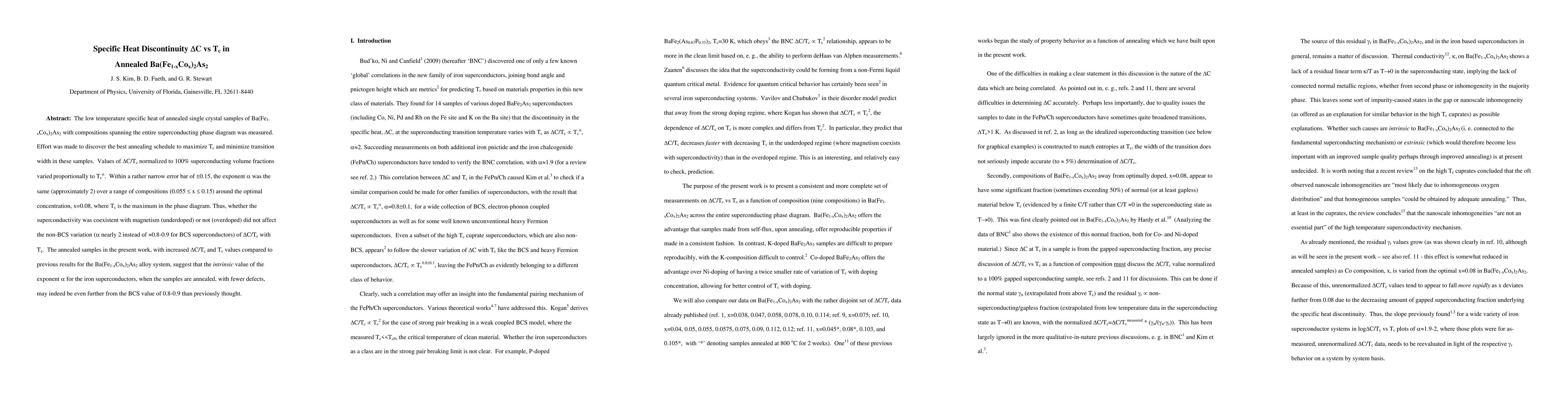 This paper investigates the specific heat discontinuity deltaC/Tc in annealed Ba(Fe1-xCox)2As2 single crystals, finding that the exponent alpha relating deltaC/Tc to Tc is approximately 2 across various compositions, regardless of magnetic coexistence. The results suggest that the intrinsic alpha value for these iron superconductors, when annealed, is significantly different from the BCS value of 0.8-0.9.
