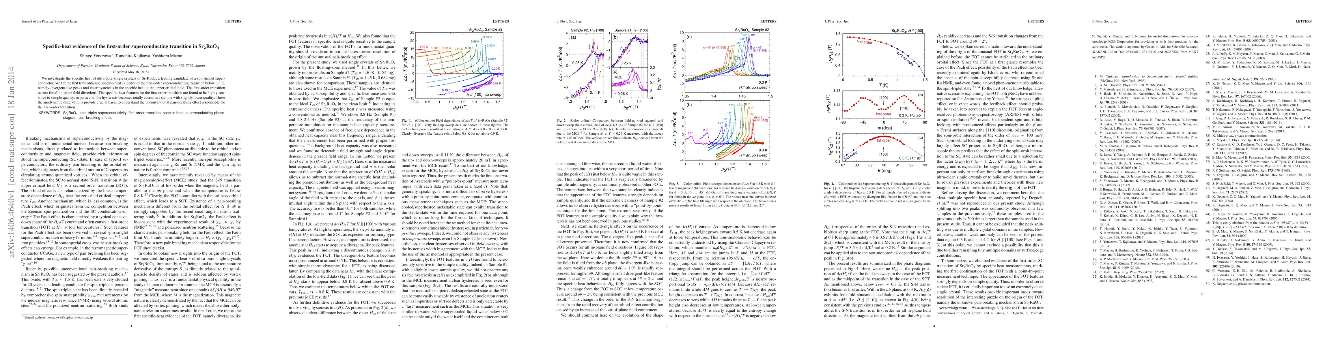 This paper reports the first-order superconducting transition in ultra-pure Sr2RuO4 single crystals, evidenced by specific-heat measurements showing divergent-like peaks and hysteresis below 0.8 K. The transition's thermodynamic features are highly sensitive to sample quality, revealing insights into the unconventional pair-breaking mechanisms.