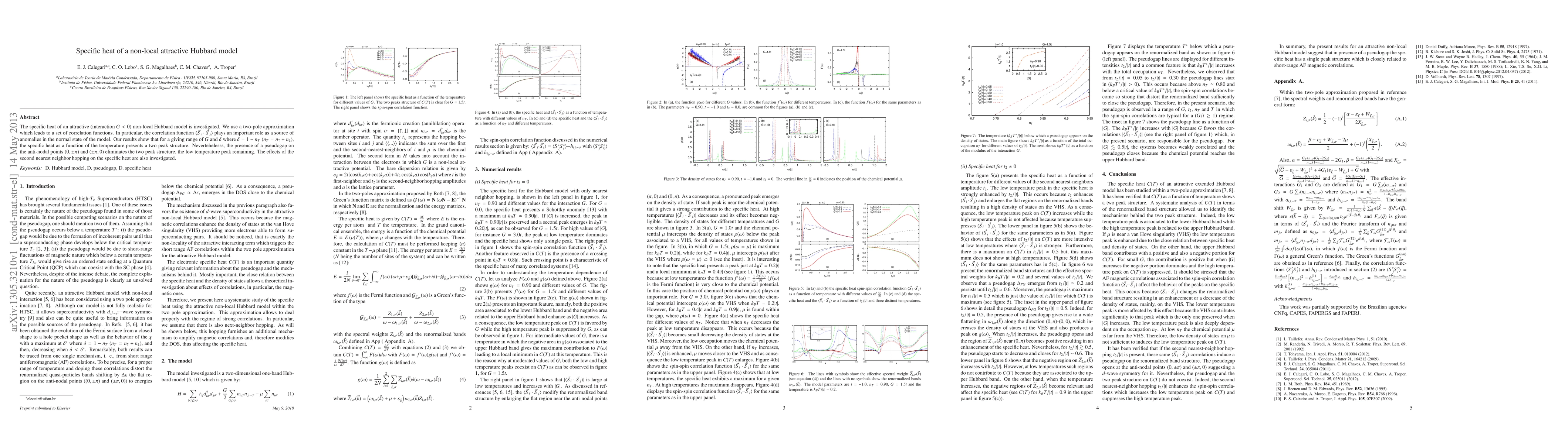 This paper investigates the specific heat of a non-local attractive Hubbard model using a two-pole approximation, revealing a two-peak structure under certain interaction conditions. The presence of a pseudogap eliminates the two-peak structure, leaving a low-temperature peak, and the study also examines the impact of second nearest neighbor hopping.