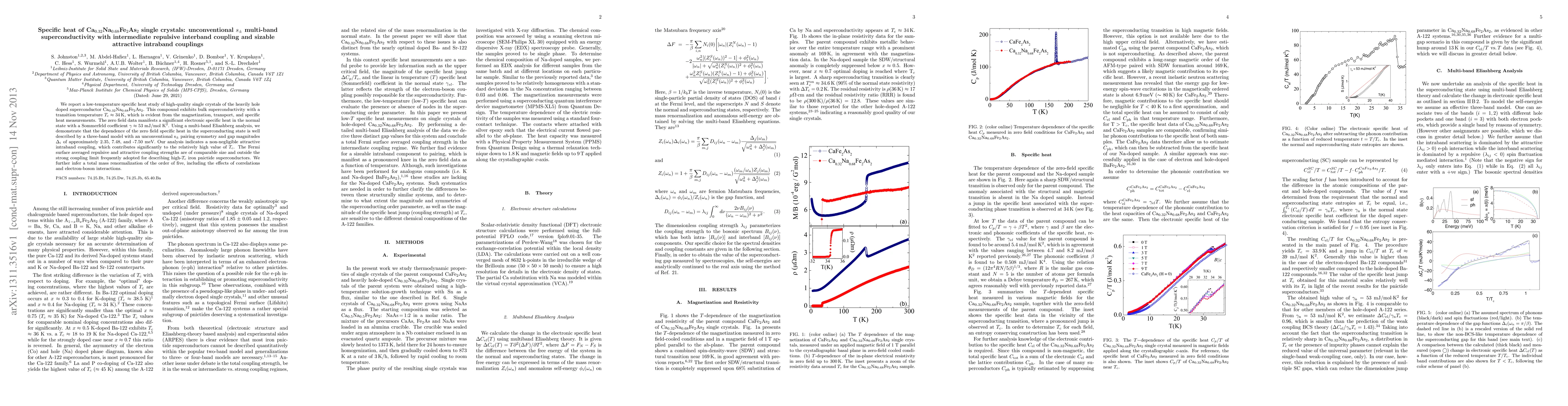 We report a low-temperature specific heat study of high-quality single crystals of the heavily hole doped superconductor Ca$_{0.32}$Na$_{0.68}$Fe$_2$As$_2$. This compound exhibits bulk superconductivity with a transition temperature $T_c \approx 34$\,K, which is evident from the magnetization, transport, and specific heat measurements. The zero field data manifests a significant electronic specific heat in the normal state with a Sommerfeld coefficient $\gamma \approx 53$ mJ/mol K$^{2}$. Using a multi-band Eliashberg analysis, we demonstrate that the dependence of the zero field specific heat in the superconducting state is well described by a three-band model with an unconventional s$_\pm$ pairing symmetry and gap magnitudes $\Delta_i$ of approximately 2.35, 7.48, and -7.50 meV. Our analysis indicates a non-negligible attractive intraband coupling,which contributes significantly to the relatively high value of $T_c$. The Fermi surface averaged repulsive and attractive coupling strengths are of comparable size and outside the strong coupling limit frequently adopted for describing high-$T_c$ iron pnictide superconductors. We further infer a total mass renormalization of the order of five, including the effects of correlations and electron-boson interactions.