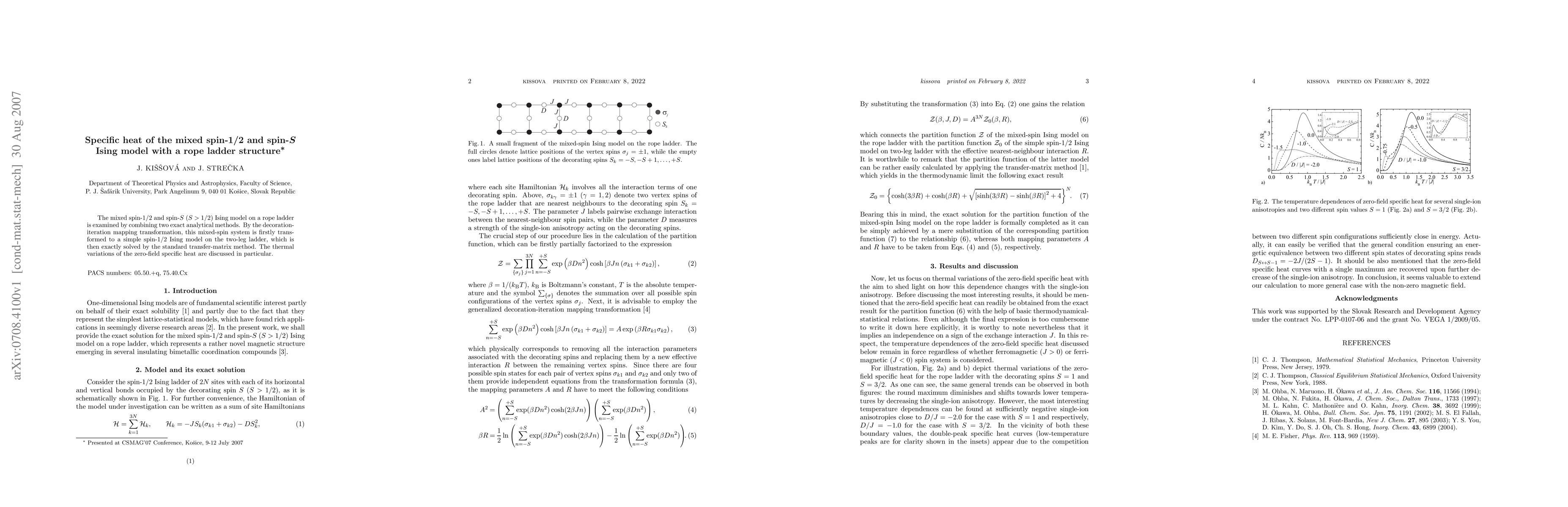 The mixed spin-1/2 and spin-S (S>1/2) Ising model on a rope ladder is examined by combining two exact analytical methods. By the decoration-iteration mapping transformation, this mixed-spin system is firstly transformed to a simple spin-1/2 Ising model on the two-leg ladder, which is then exactly solved by the standard transfer-matrix method. The thermal variations of the zero-field specific heat are discussed in particular.