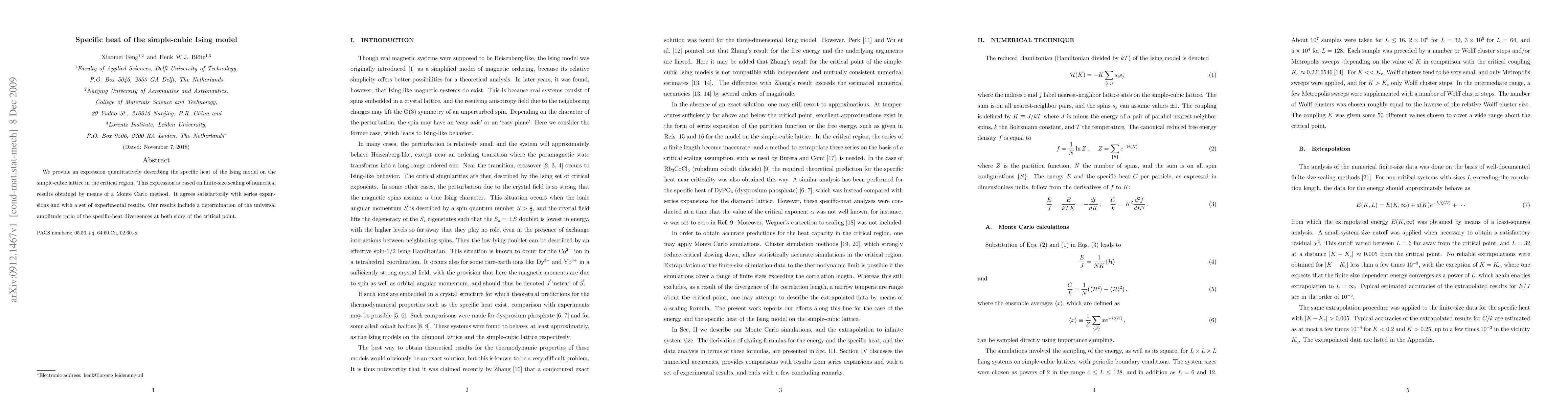 This paper quantitatively describes the specific heat of the simple-cubic Ising model near the critical point using finite-size scaling from Monte Carlo simulations, aligning well with series expansions and experimental data, and determines the universal amplitude ratio for specific-heat divergences.