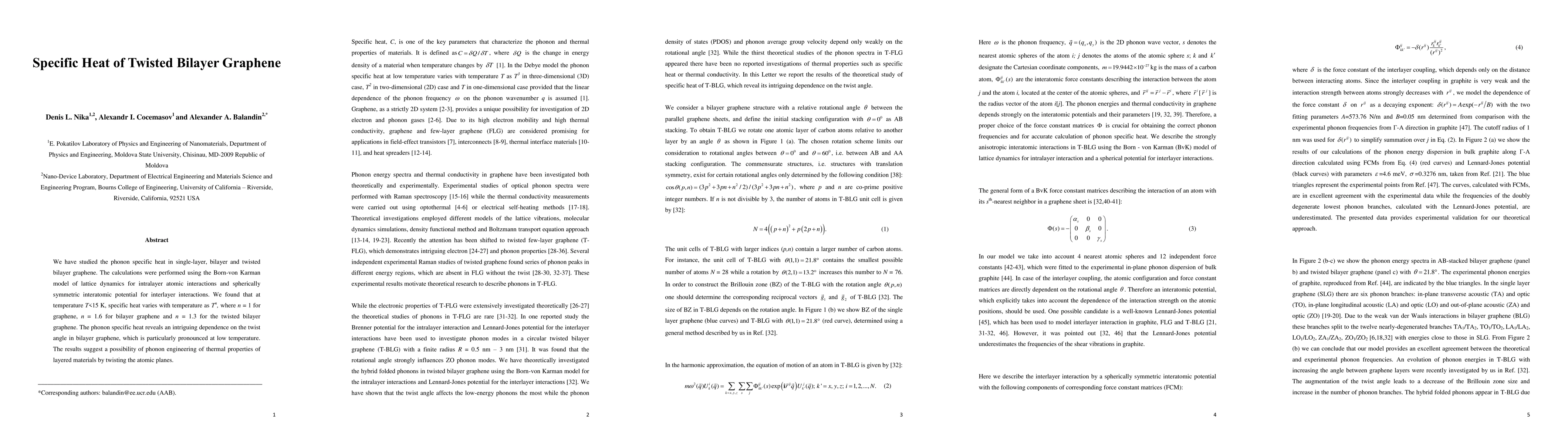 The paper presents a theoretical framework for understanding the phonon specific heat in single-layer, bilayer, and twisted bilayer graphene, highlighting the unique behavior of twisted bilayer graphene.