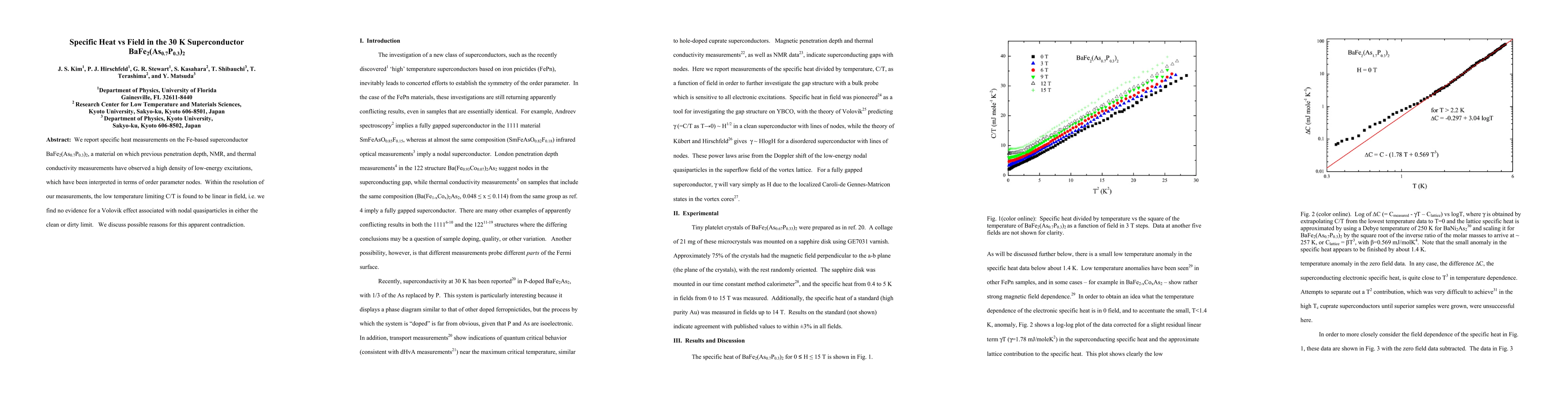 This paper reports specific heat measurements on the superconductor BaFe2(As0.7P0.3)2, finding that the low-temperature specific heat is linear in magnetic field, with no evidence for a Volovik effect, despite previous observations suggesting nodal quasiparticles. The authors discuss potential reasons for this discrepancy.