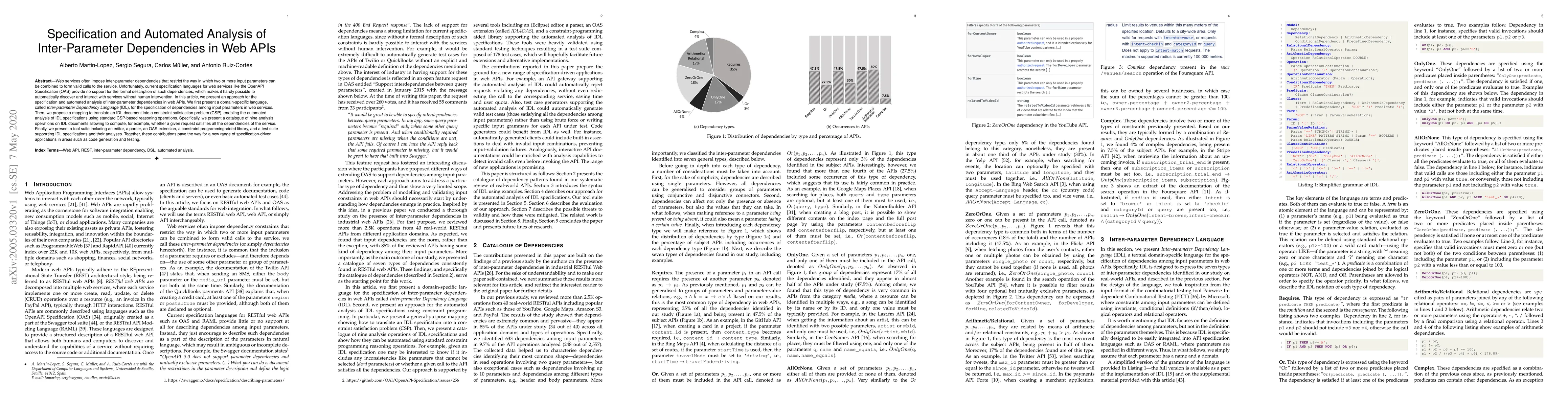 This paper introduces a domain-specific language, Inter-parameter Dependency Language (IDL), for specifying inter-parameter dependencies in web APIs and proposes a method to translate IDL into constraint satisfaction problems (CSP) for automated analysis. The authors provide a suite of tools to support IDL specifications and their analyses, aiming to facilitate automated interaction with web services.