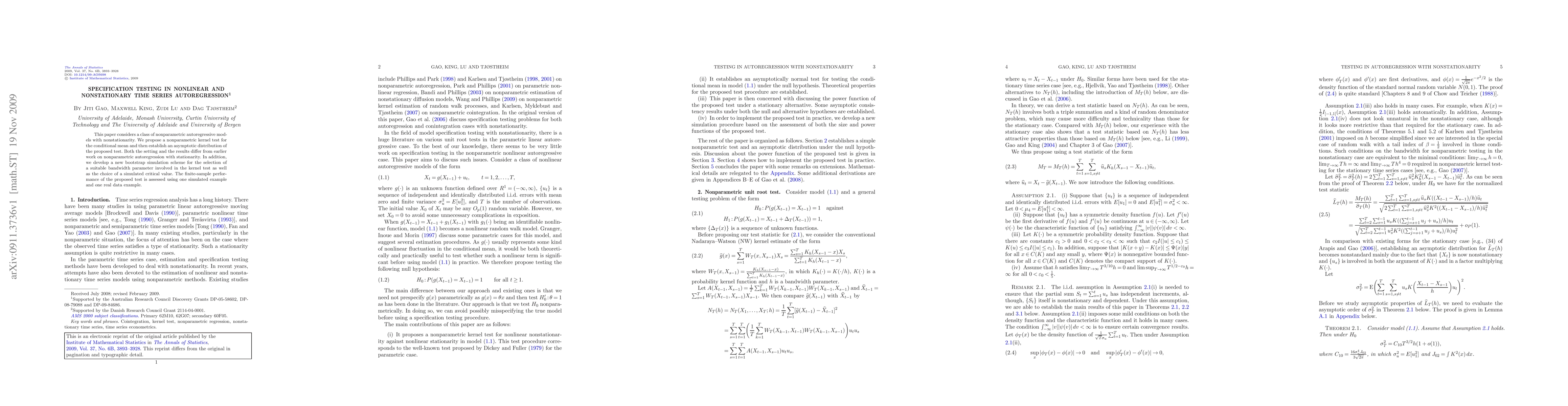 This paper proposes a nonparametric test for autoregressive models with nonstationarity, including a new bootstrap simulation scheme to select critical values, and assesses its finite-sample performance on simulated and real data examples.