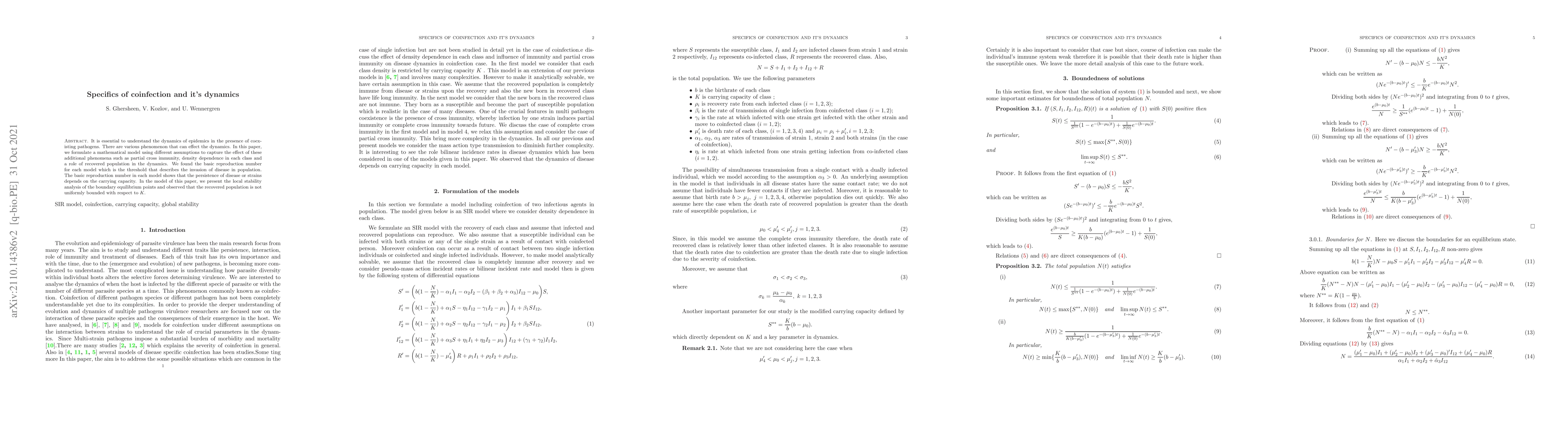 It is essential to understand the dynamics of epidemics in the presence of coexisting pathogens. There are various phenomenon that can effect the dynamics. In this paper, we formulate a mathematical model using different assumptions to capture the effect of these additional phenomena such as partial cross immunity, density dependence in each class and a role of recovered population in the dynamics. We found the basic reproduction number for each model which is the threshold that describes the invasion of disease in population. The basic reproduction number in each model shows that the persistence of disease or strains depends on the carrying capacity. In the model of this paper, we present the local stability analysis of the boundary equilibrium points and observed that the recovered population is not uniformly bounded with respect to the carrying capacity.