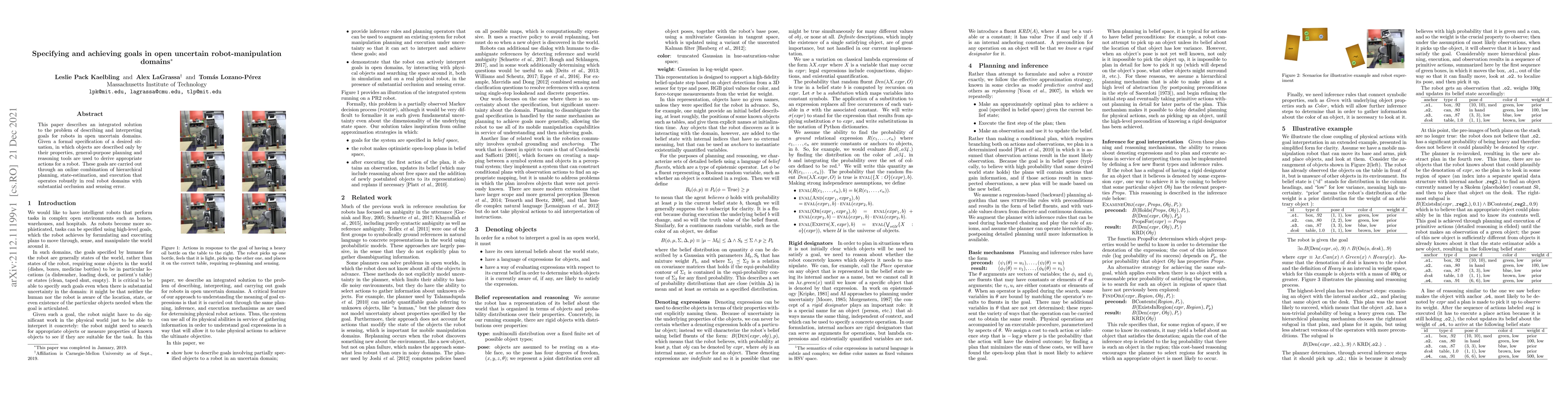 This paper describes an integrated solution to the problem of describing and interpreting goals for robots in open uncertain domains. Given a formal specification of a desired situation, in which objects are described only by their properties, general-purpose planning and reasoning tools are used to derive appropriate actions for a robot. These goals are carried out through an online combination of hierarchical planning, state-estimation, and execution that operates robustly in real robot domains with substantial occlusion and sensing error.