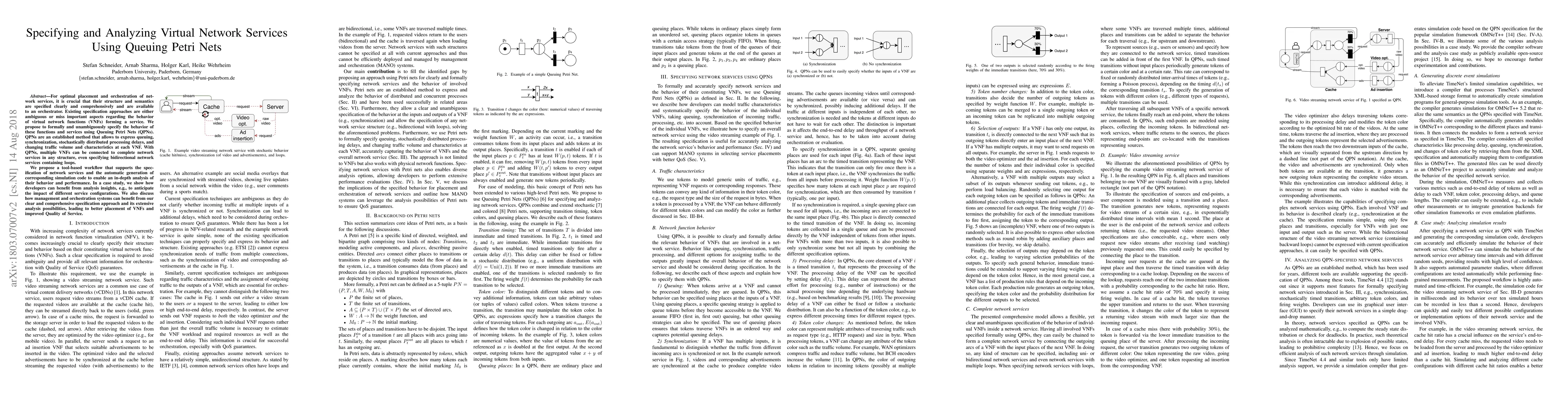 This paper proposes using Queuing Petri Nets to specify virtual network services clearly and unambiguously, enabling better placement and orchestration of network functions and improving Quality of Service.