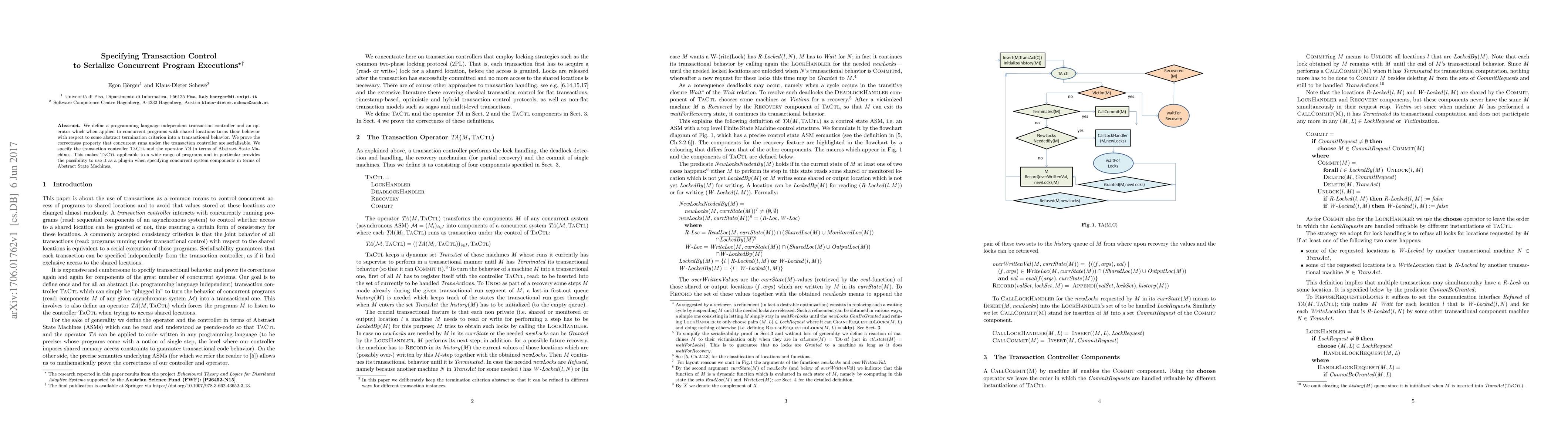 Researchers develop a language-independent transaction controller to serialize concurrent program executions, proving its correctness property for serializability.