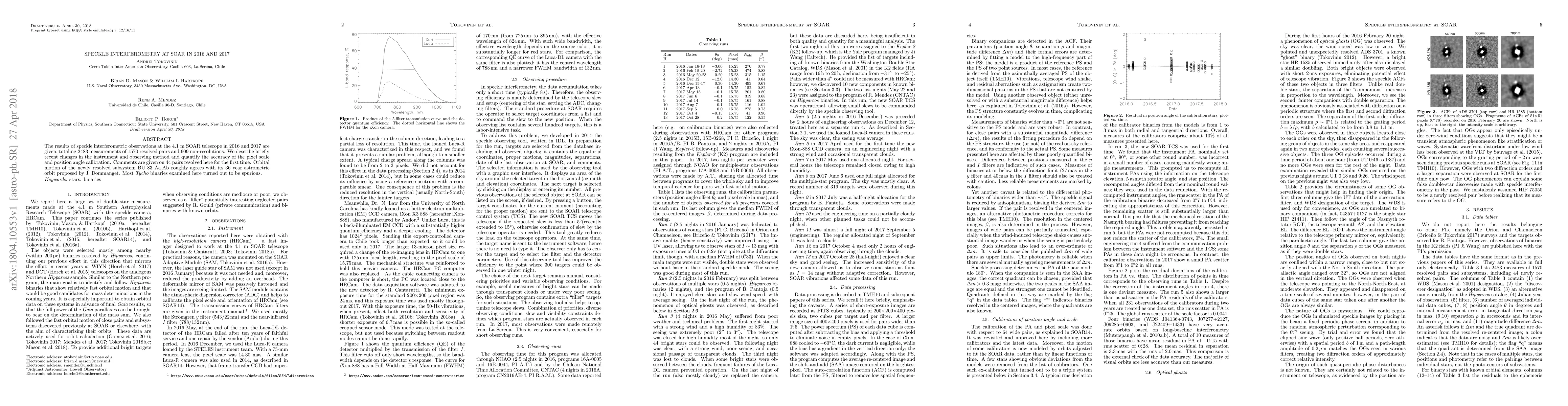 The results of speckle interferometric observations at the 4.1 m SOAR telescope in 2016 and 2017 are given, totaling 2483 measurements of 1570 resolved pairs and 609 non-resolutions. We describe briefly recent changes in the instrument and observing method and quantify the accuracy of the pixel scale and position angle calibration. Comments are given on 44 pairs resolved here for the first time. Orbital motion of the newly resolved subsystem BU~83 Aa,Ab roughly agrees with its 36 year astrometric orbit proposed by J.~Dommanget. Most Tycho binaries examined here turned out to be spurious.