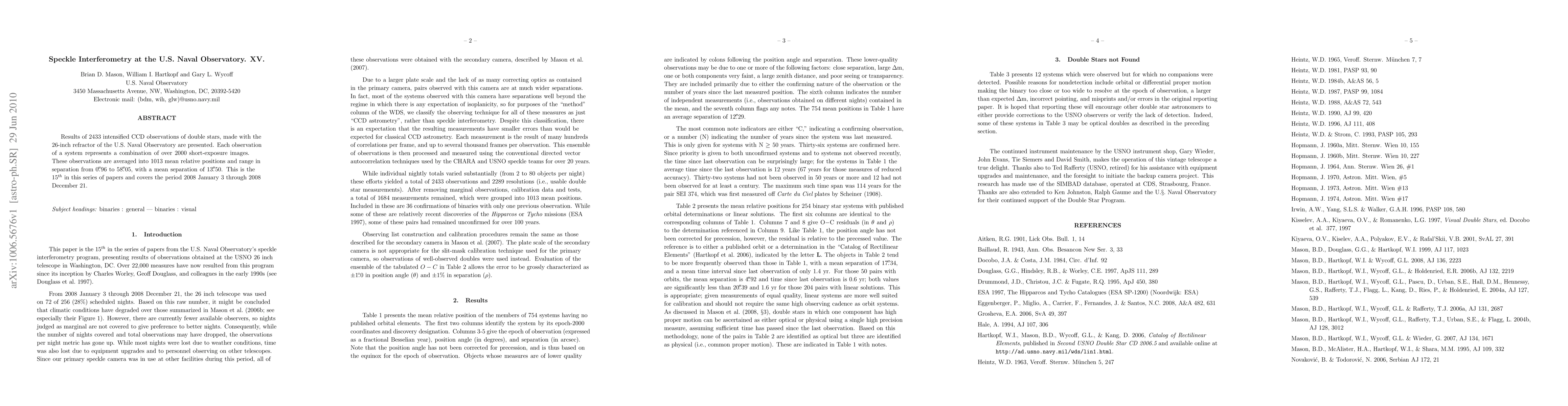 Results of 2433 intensified CCD observations of double stars, made with the 26-inch refractor of the U.S. Naval Observatory are presented. Each observation of a system represents a combination of over 2000 short-exposure images. These observations are averaged into 1013 mean relative positions and range in separation from 0.96" to 58.05", with a mean separation of 13.50". This is the 15th in this series of papers and covers the period 2008 January 3 through 2008 December 21.