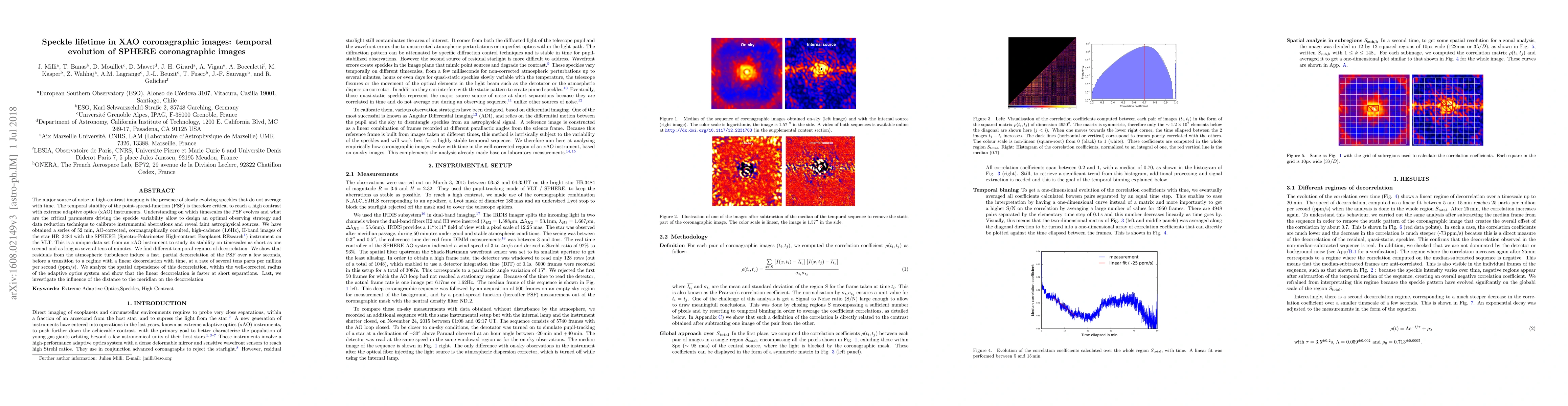 This study investigates the temporal evolution of speckles in high-contrast imaging using SPHERE's xAO system, revealing different decorrelation regimes. It finds fast, partial decorrelation due to atmospheric turbulence, followed by a linear decorrelation rate of several tens ppm/s, which is faster at shorter separations.