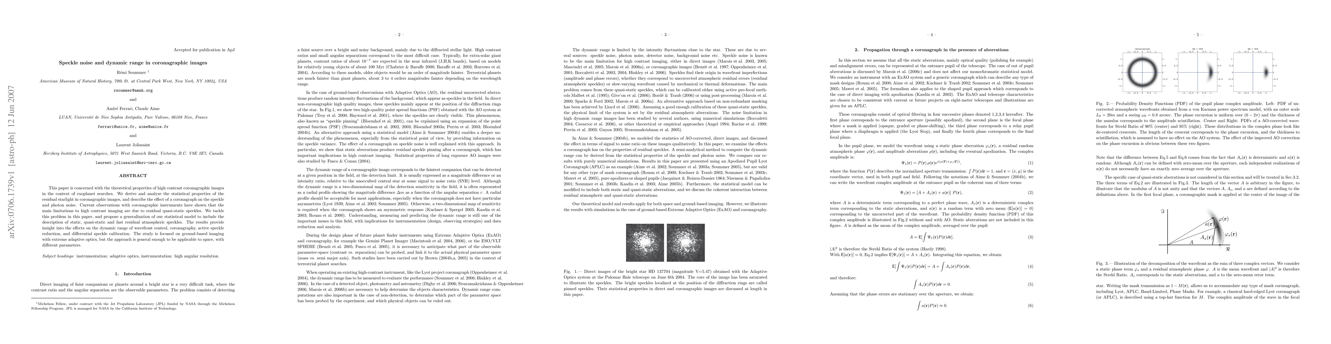 This paper investigates the statistical properties of residual starlight in coronagraphic images, focusing on speckle noise and dynamic range limitations in exoplanet searches. It proposes a generalized model to describe various types of residual speckles, providing insights into their impact on wavefront control and adaptive optics techniques.