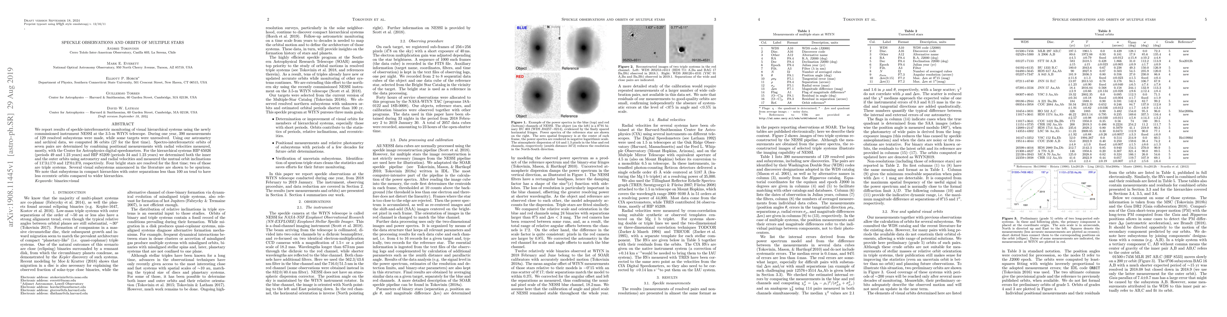 We report results of speckle-interferometric monitoring of visual hierarchical systems using the newly commissioned instrument NESSI at the 3.5-m WIYN telescope. During one year, 390 measurements of 129 resolved subsystems were made, while some targets were unresolved. Using our astrometry and archival data, we computed 36 orbits (27 for the first time). Spectro-interferometric orbits of seven pairs are determined by combining positional measurements with radial velocities measured, mostly, with the Center for Astrophysics digital speedometers. For the hierarchical systems HIP 65026 (periods 49 and 1.23 years) and HIP 85209 (periods 34 and 1.23 years) we determined both the inner and the outer orbits using astrometry and radial velocities and measured the mutual orbit inclinations of 11.3+-1.0 deg and 12.0+-3.0 deg, respectively. Four bright stars are resolved for the first time; two of those are triple systems. Several visual subsystems announced in the literature are shown to be spurious. We note that subsystems in compact hierarchies with outer separations less than 100 au tend to have less eccentric orbits compared to wider hierarchies.