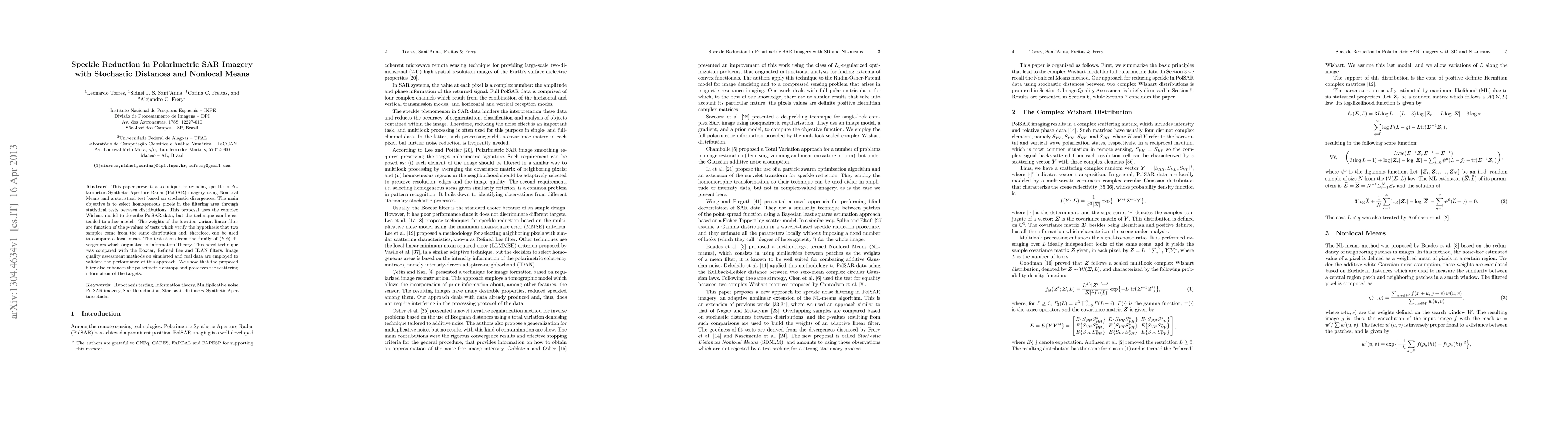 This paper proposes a new technique to reduce speckle in Polarimetric SAR imagery using Nonlocal Means, which outperforms existing filters in image quality assessment and preserves scattering information.