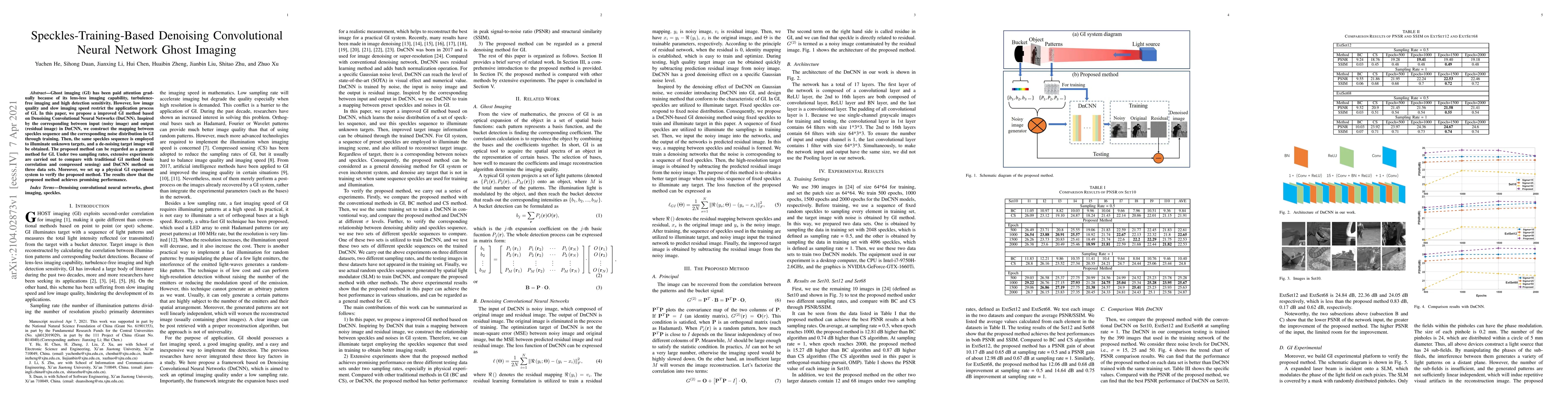 This paper proposes a novel denoising convolutional neural network (DnCNN)-based ghost imaging method to enhance image quality and speed. The method trains a mapping between speckles sequences and noise distribution, leading to improved de-noising of target images, with promising results compared to traditional methods.